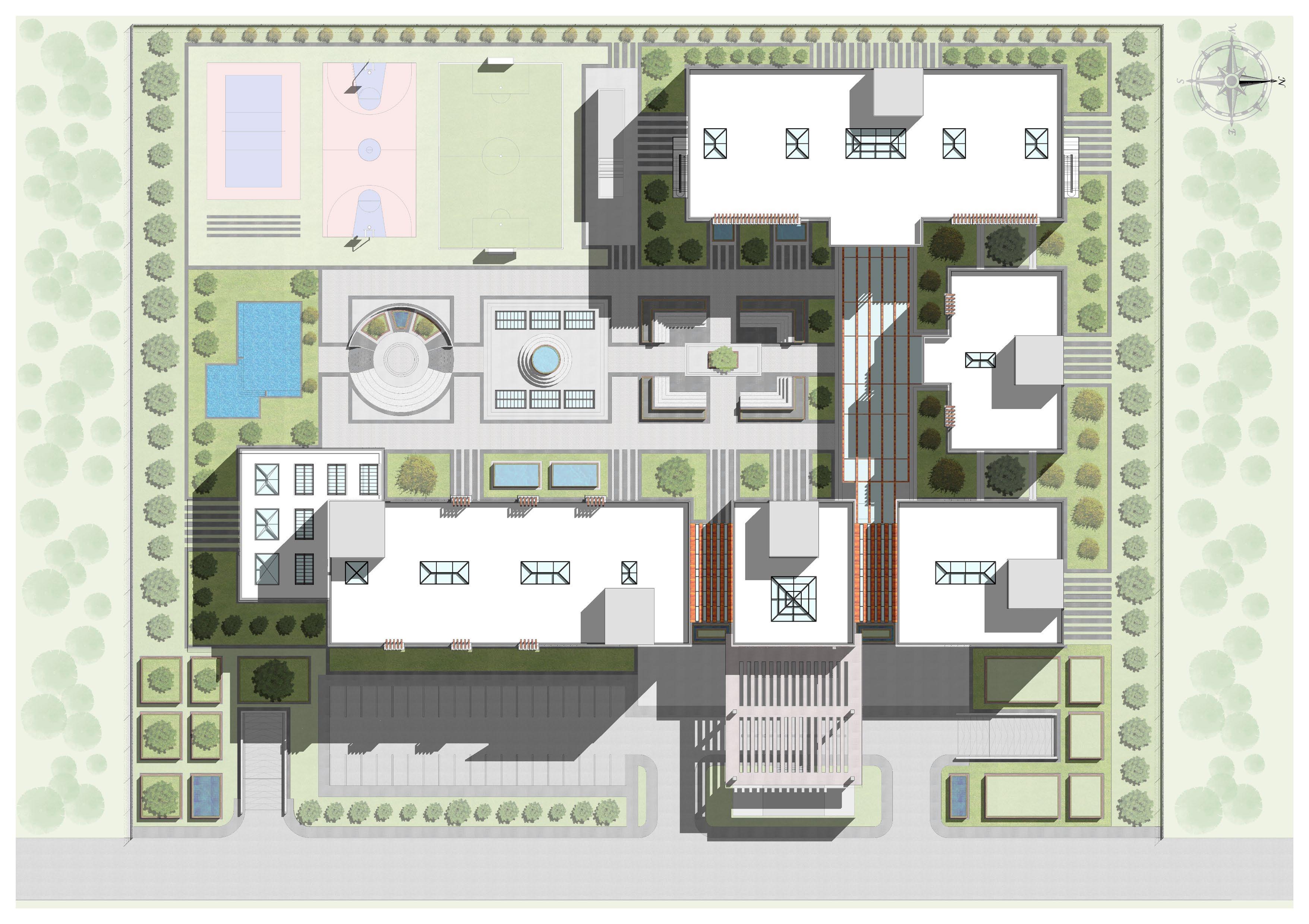 The concept of the project is to create a combination between introvert architecture; to provide safe, secure and calm atmosphere for patients and extrovert architecture; to orient the project toward the huge green areas surrounding the site to enhance and support the ptoject theme “Biophilic Healing Architecture” through integrating physical built area with natural features and interacting patients with harmonous nature to improve the healing process.
