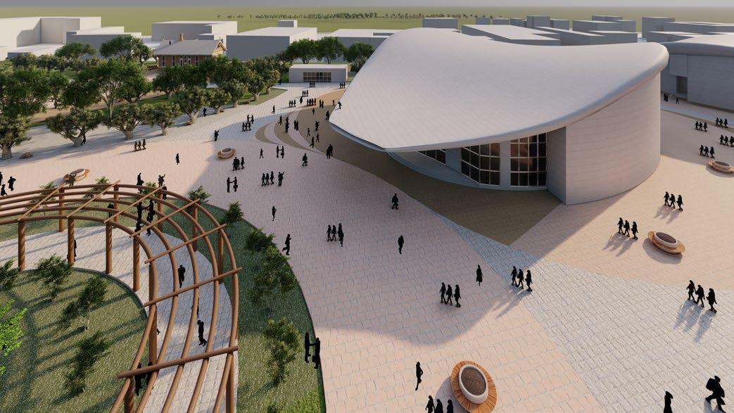 The concept of the project is rethinking the future without blowing up the past. It targets to be futuristic cultural park that rehink the future through recalling the past by integrating the ancient, current and the coming lifestyle. The concept is achieved by a creation of fluidity that refers to seamlessness where there is a movement within the space without any obstruction. It gives a feeling of being in motion while being in a solid, closed matter. The design approach resorted to create important elements such as curves, flow, dynamic nature, and flexibility to serve the main concept of the project. From the very beginning of the design stages, fluidity started from the existing planning of the train railway in the site and conserving the existing buildings that manages, at that time, the train railway, circulation maintenance and services