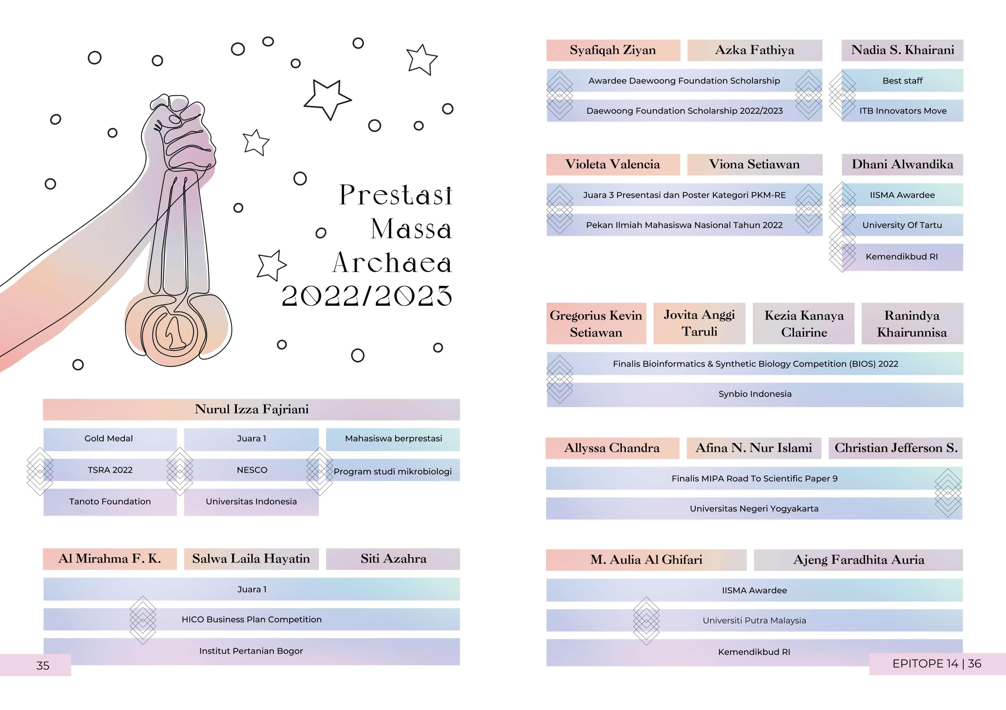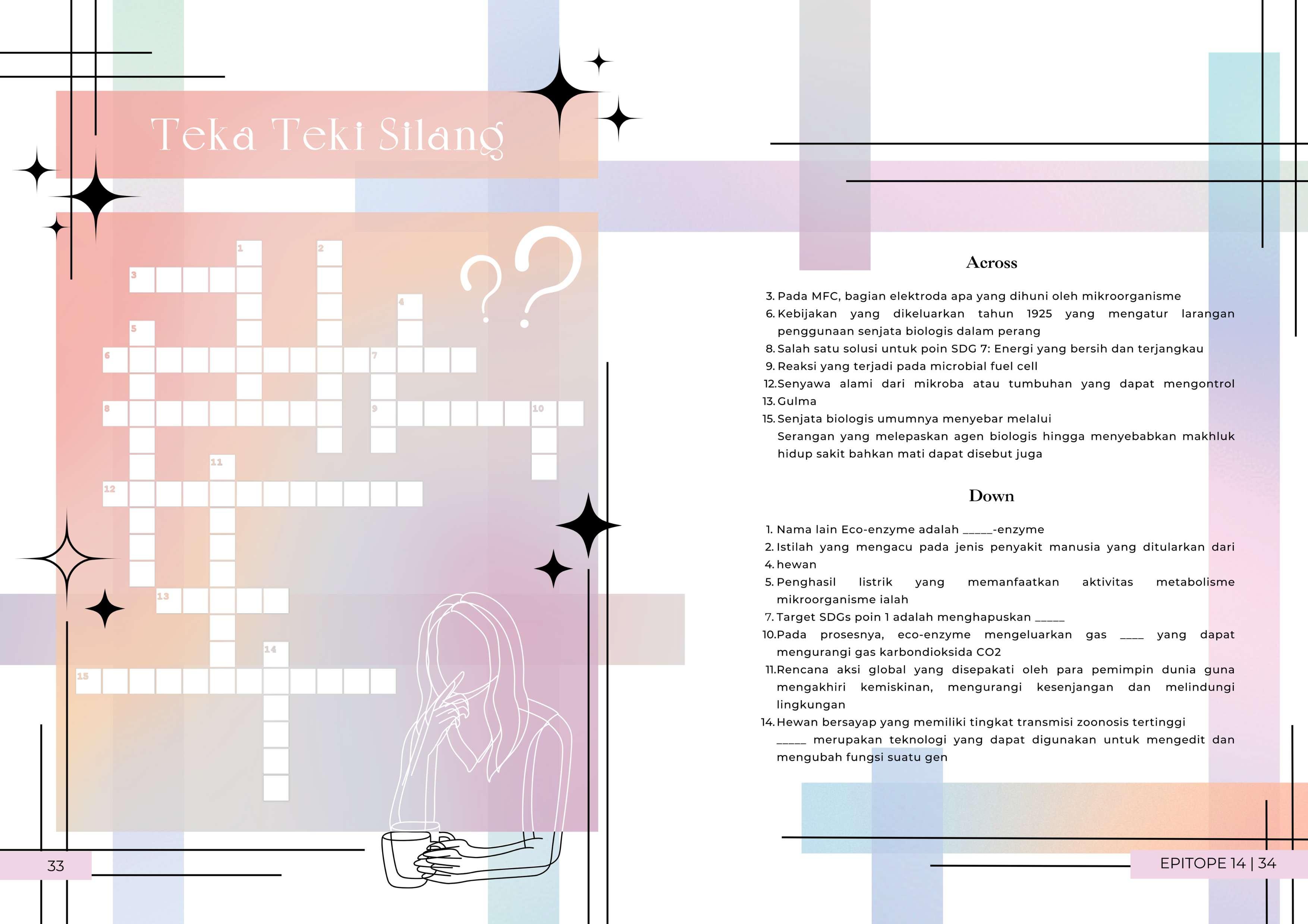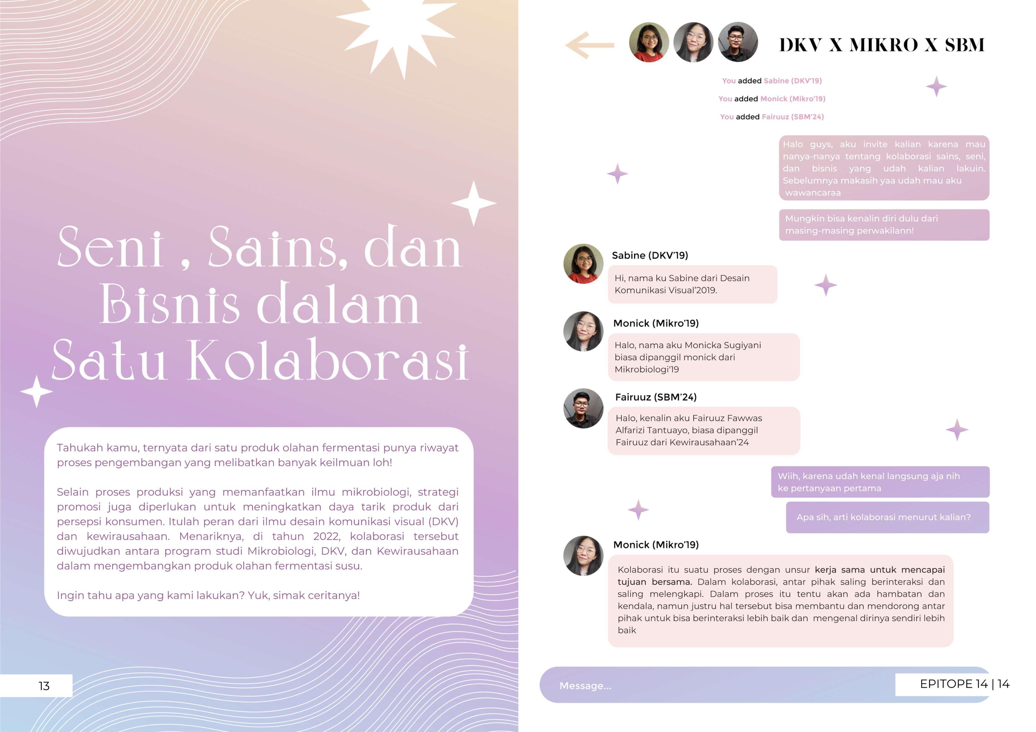 EPITOPE adalah majalah keilmuan dan keprofesian mikrobiologi yang disusun oleh HIMAMIKRO "Archaea" ITB. EPITOPE edisi 14 ini mengangkat tema "Reaching the Goals with Microbes". Kamu akan menemukan berbagai fakta menarik keterkaitan mikroba dengan SDGs. Penasaran? Yuk langsung dibaca majalahnya!