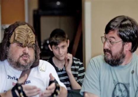 I’d be able to say I’d met him. He responded, “You can say you met me.” I don’t think he wanted to be interviewed. I can’t really blame him; it was a party, after all. But he was a kind and friendly man. I spoke to several other people, one of whom was a woman who’d made the trip from Poland for the qep’a’ wejmaH cha’DIch. Another was Jeremy, a member since the Klingon Language Institute was in its infancy. He had a great singing voice and led the room from the rear.