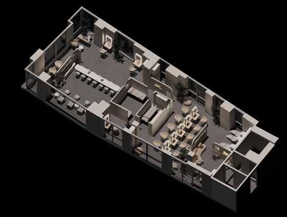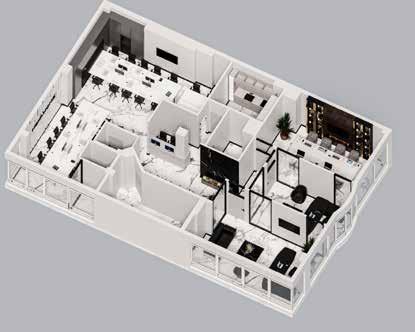The main underlying idea of the project is to produce separate spaces with different functions which are at the same time parts of a whole structure in the form of boxes in two colors which differentiates the dirty and clean spaces. This boxes are closed or semi-closed without any acoustic or olfactory disturbances. The customer will have enough room to experience a private catwalk.
