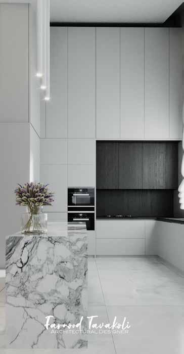 Since we paid special attention to the surrounding walls in the design, it was difficult to dedicate one of these walls to the kitchen.so we pursued the idea of an independent kitchen and came up with a space that was completely independent and with the way it was placed, we defined the entrance space and achieved the necessary function with the hall with the right accompaniment.