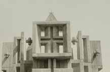 Church proposed an innovative take on medieval Armenian churches using poured concrete, incorporating a complex arrangement of supports, openings, and suspensions. While staying true to the balanced and centralized layout seen in medieval domed churches like Saint Hripsimeh, Project ingeniously molded the design to embody the height and cross-section of traditional churches, forming an allegorical depiction of the Christian cross. Is it an architectural sculpture or a sculptural architecture?