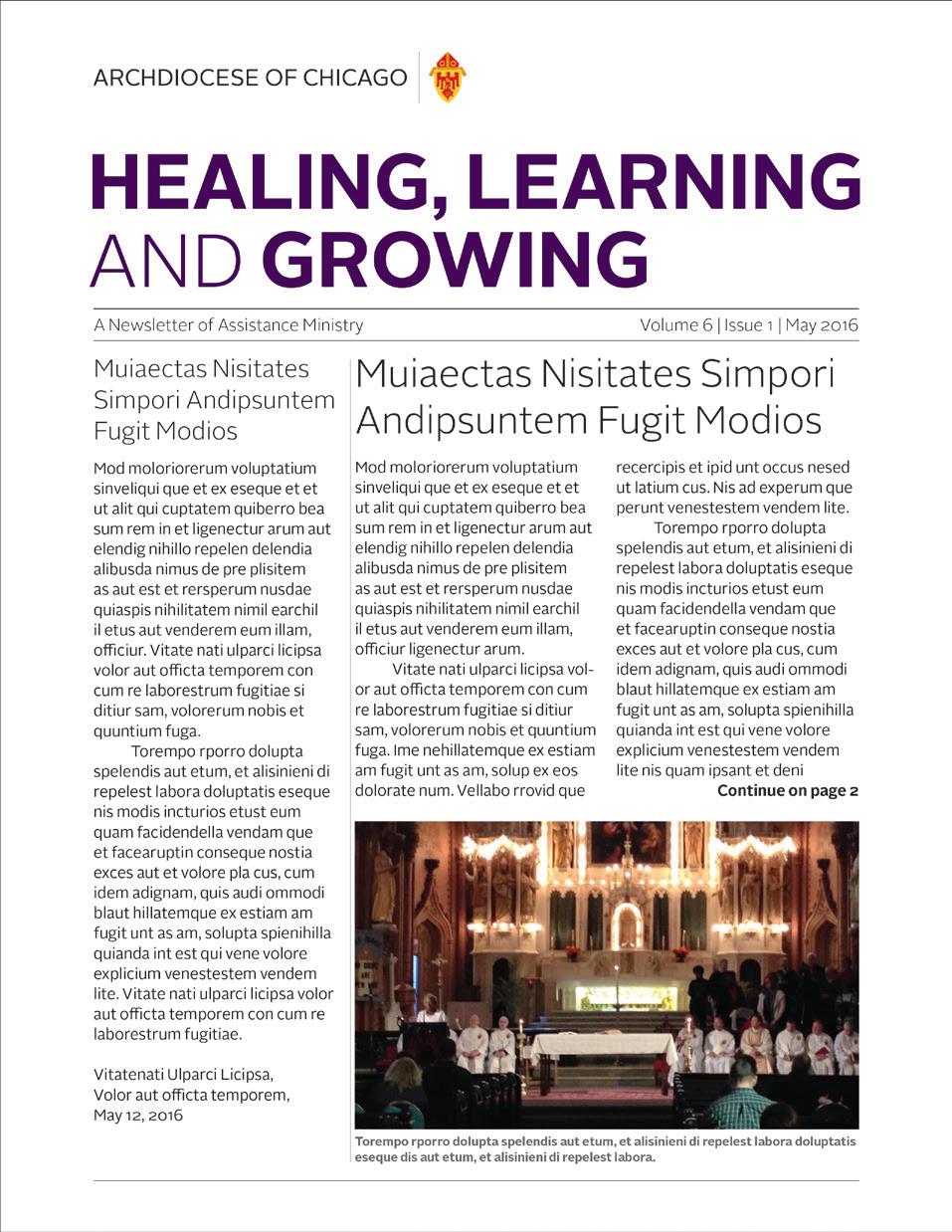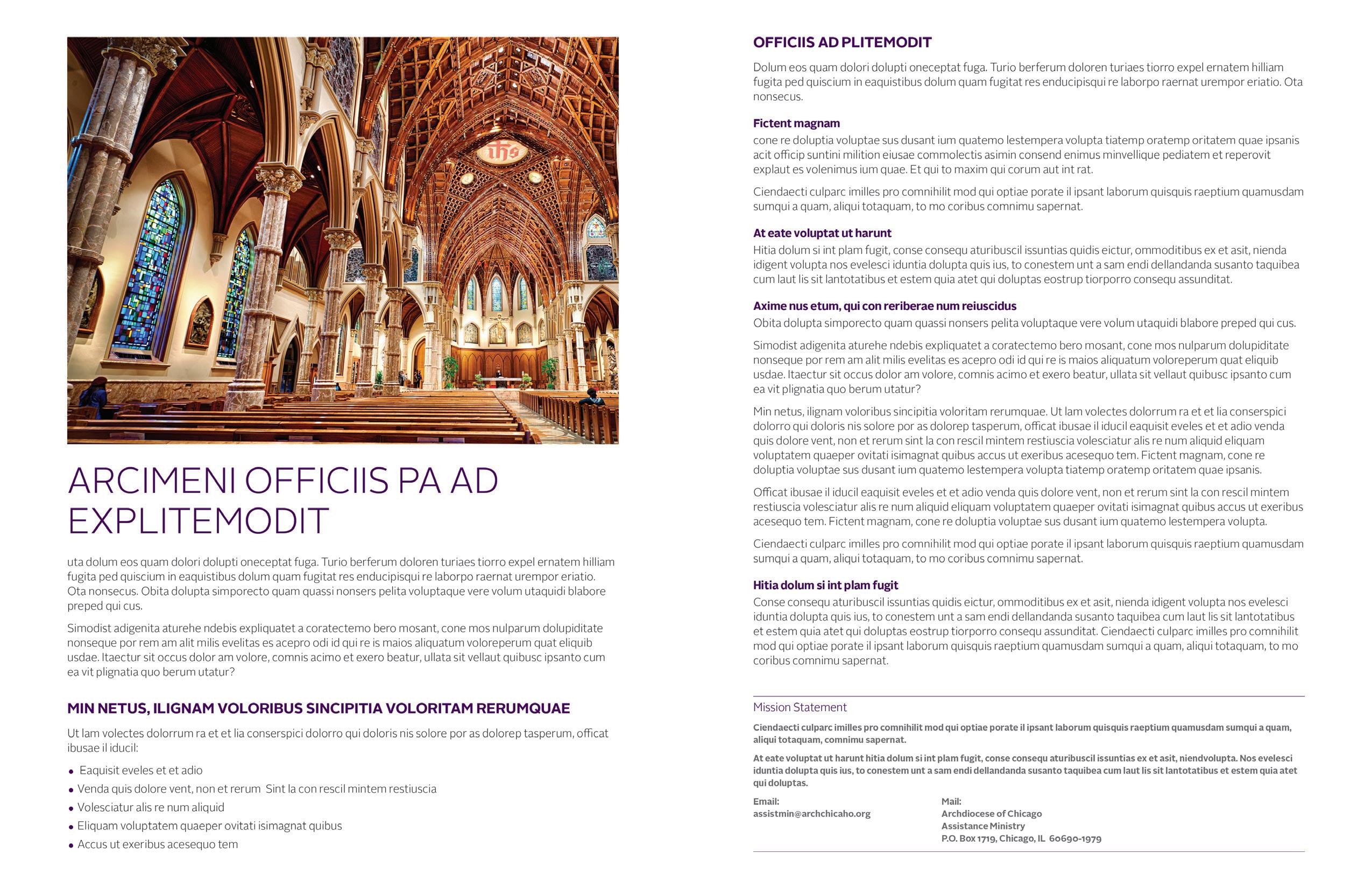 Only three typefonts are used for all Archdiocese of Chicago communications (see 1.3), and our typographic style is to align all information flush left and random right.