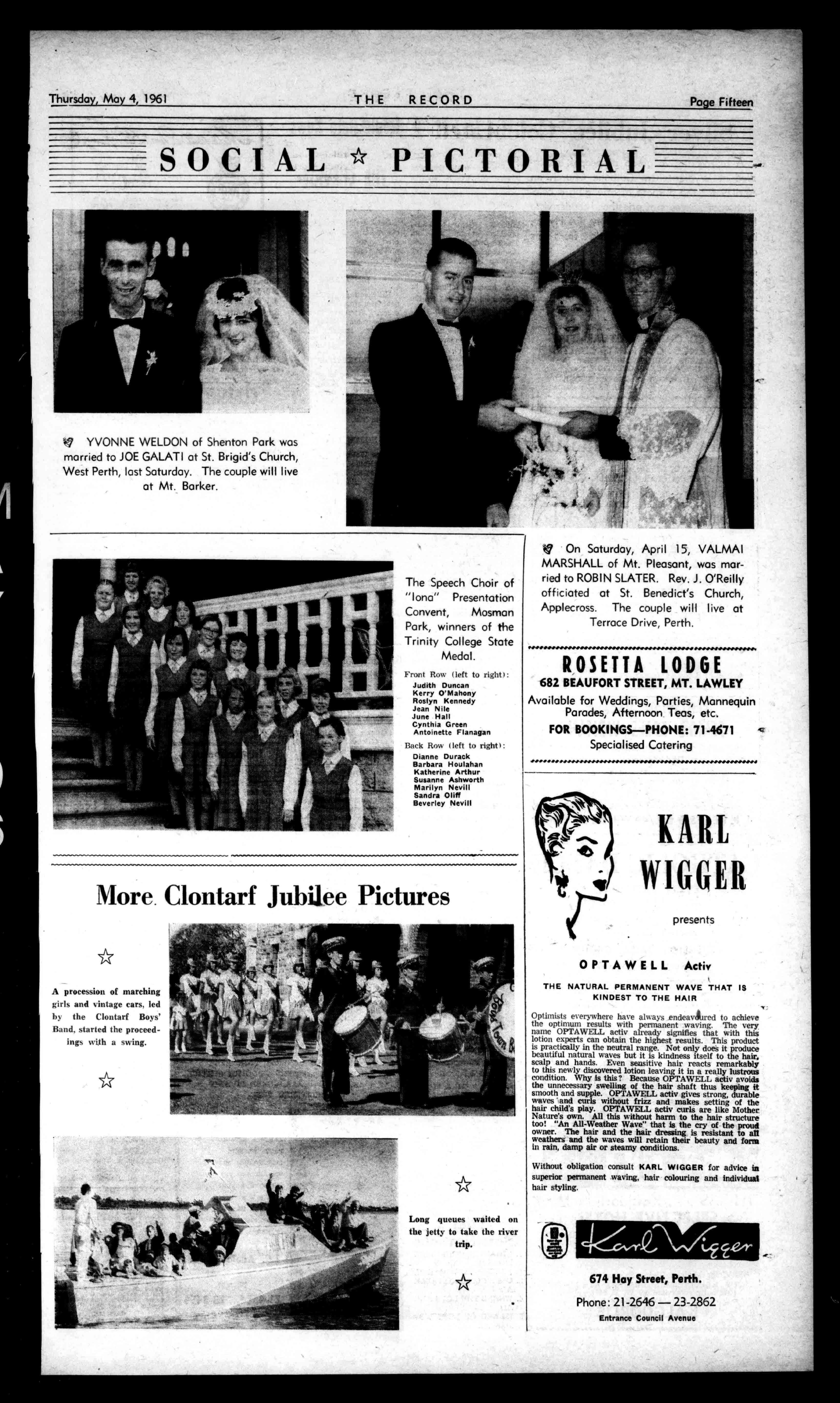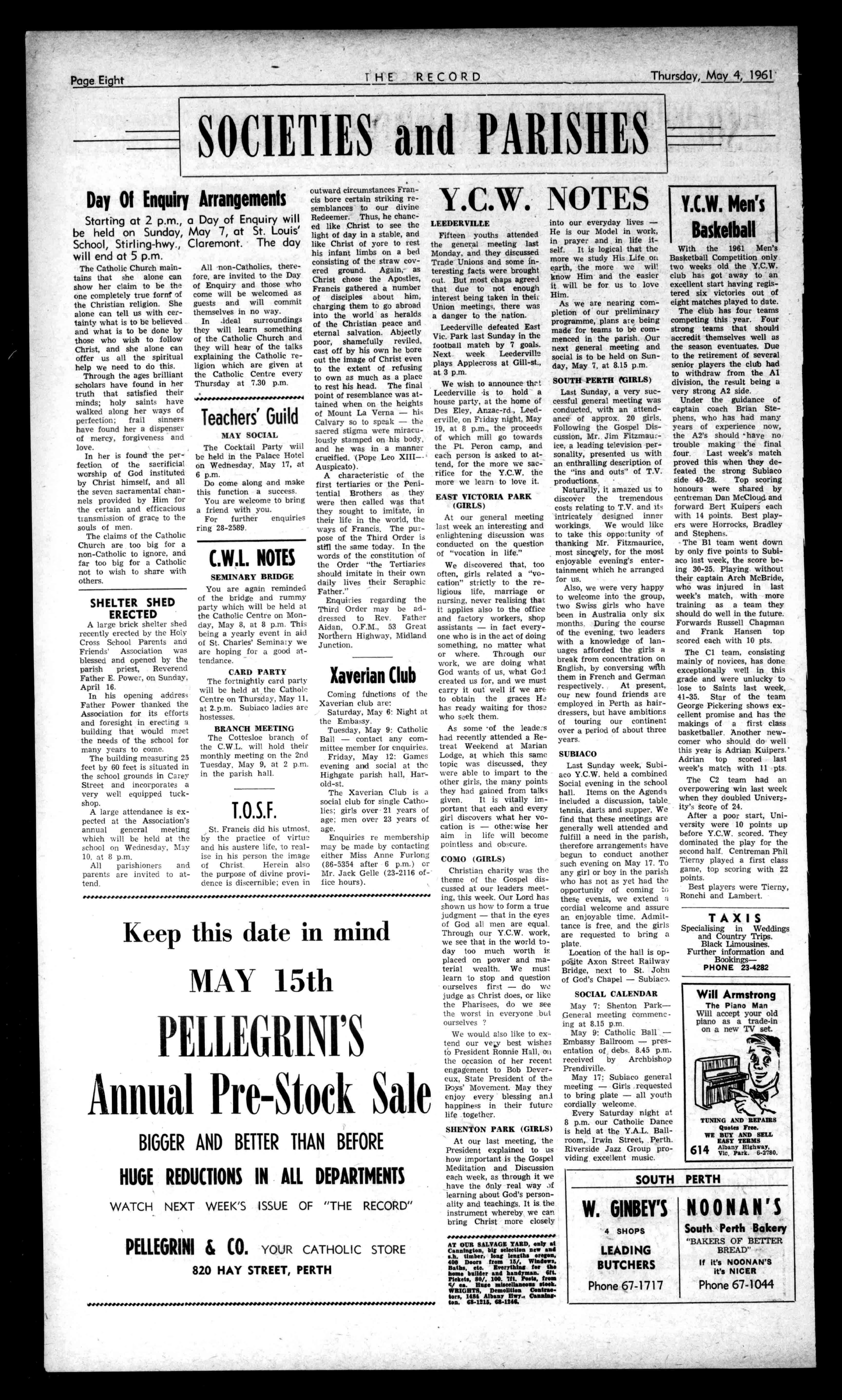 Thursday,May4,'1961 PractitionerstoAll BranchesofDentistry 790-794HAYSTREET, PERTH Phones(11-7454.11-711E7 Eswergeneyi71.16411,5II-161111. Principals.JosephL.Roger.; AlfredLRogers,Dtp.CenvenlantCarParkkg0a musedhirhos. THERECORD,450HAYSTREET. BoxR1279,G.P.O.,PERTH Telephone21-2837. SubscriptionRates: Allcorrespondenceshould £2/5/6peryear beaddressedtoThe £1/2/9perhalf-year Manager. Engagements,Births,Marriages,Deaths,InMemoriam, Accommodation,Wanted,ForSale,andallclassesof ClassifiedAdvertisements:4/-forthefirst10words, then1/6foreveryfivewordsorpartthereof. DISPLAYADVERTISING;15/-persinglecolumninch, orbycontractrates.-ApplyAdvertisingDepartment.