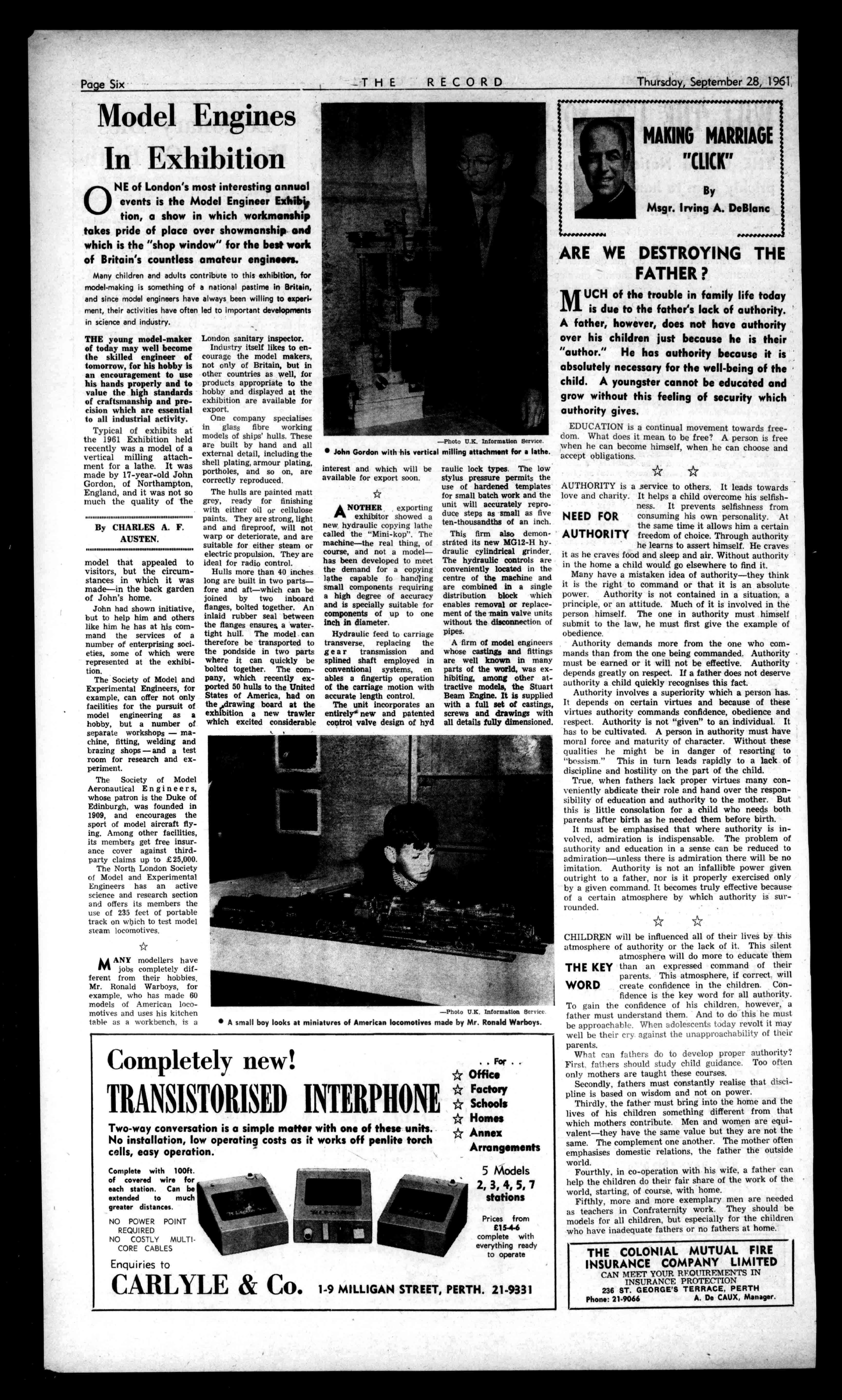 W.F.SAMSON F.0 R.E.I.W.A. 5QUEENSTREET,FREMANTLE REALESTATEAGENT,AUCTIONEERandSWORNVALUATOR RentsCollected.EstatesManaged.Representing:Queensland InsuranceCo..LtdRoyalAutomobileClubofW.A.(Inc.), RAC.InsurancePlyLtd. ColonialMutualLifeAssuranceSecy.Ltd. Phones:Office:5-1516.5-3170-Private:W.F.Samson,5-2553: 0.0,Samson,S9-1651, DoyourFIREandCARINSURANCEatthecameoffice. AllRA.0SubscriptionsandInsurance Received. MOBILECRANEFORHIRE Liftsupto6tons JIBLENGTHSUPTO64FT. G.T.ROBINSON,PTY.LTD. 3CLAUDESTREET,RIVERVALE Phones:6-1605-6-6361. AfterHours:26-1841. SERVICESATISFACTIONECONOMY LEAHY'SSHOESTORE 409FITZGERALDSTREET,NORTHPERTH Phone28-2175
