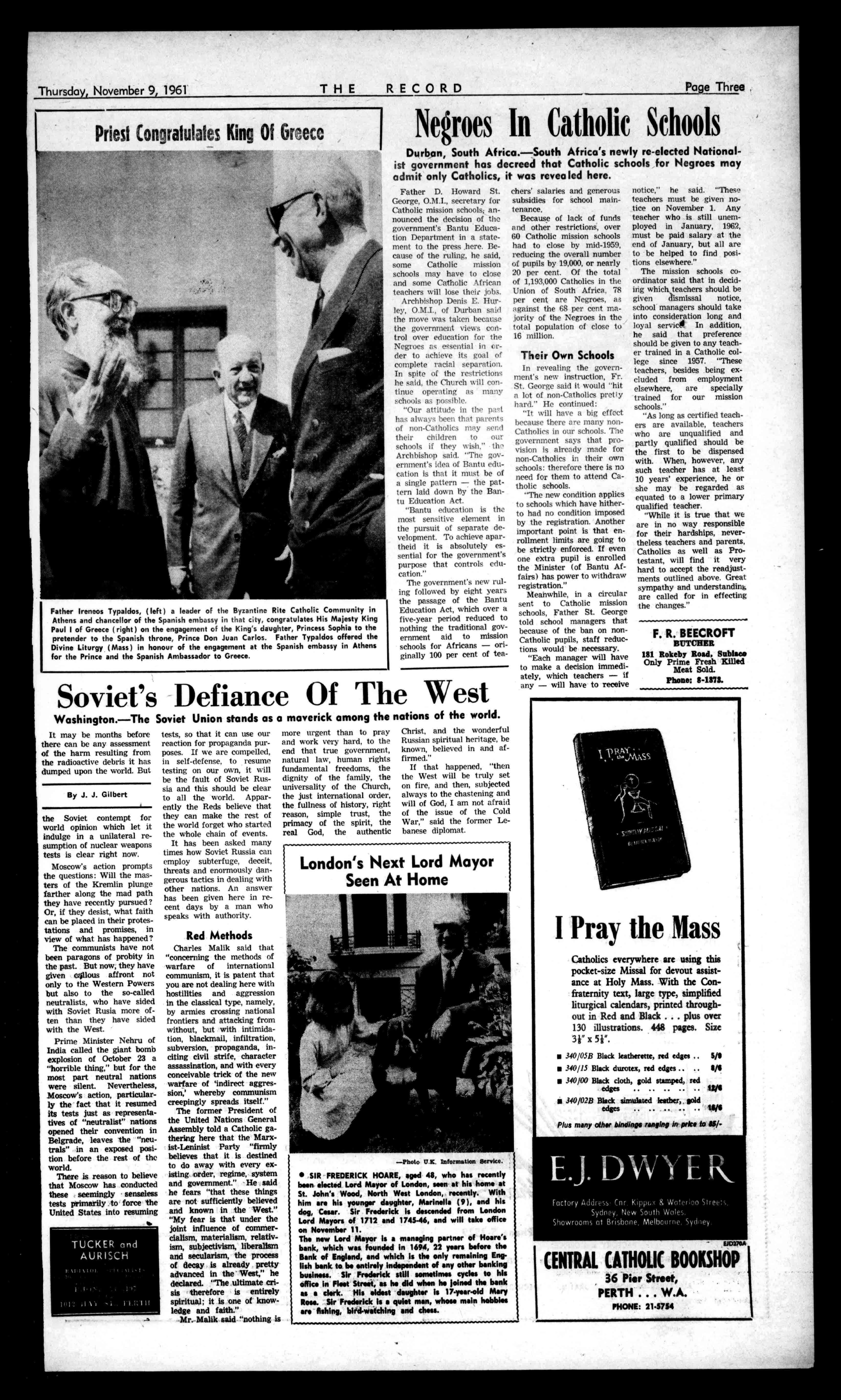 OneofVictoria'sCatholic papers,TheTribune,announedthiscomingmeeting inaPageOnearticlelast week.
