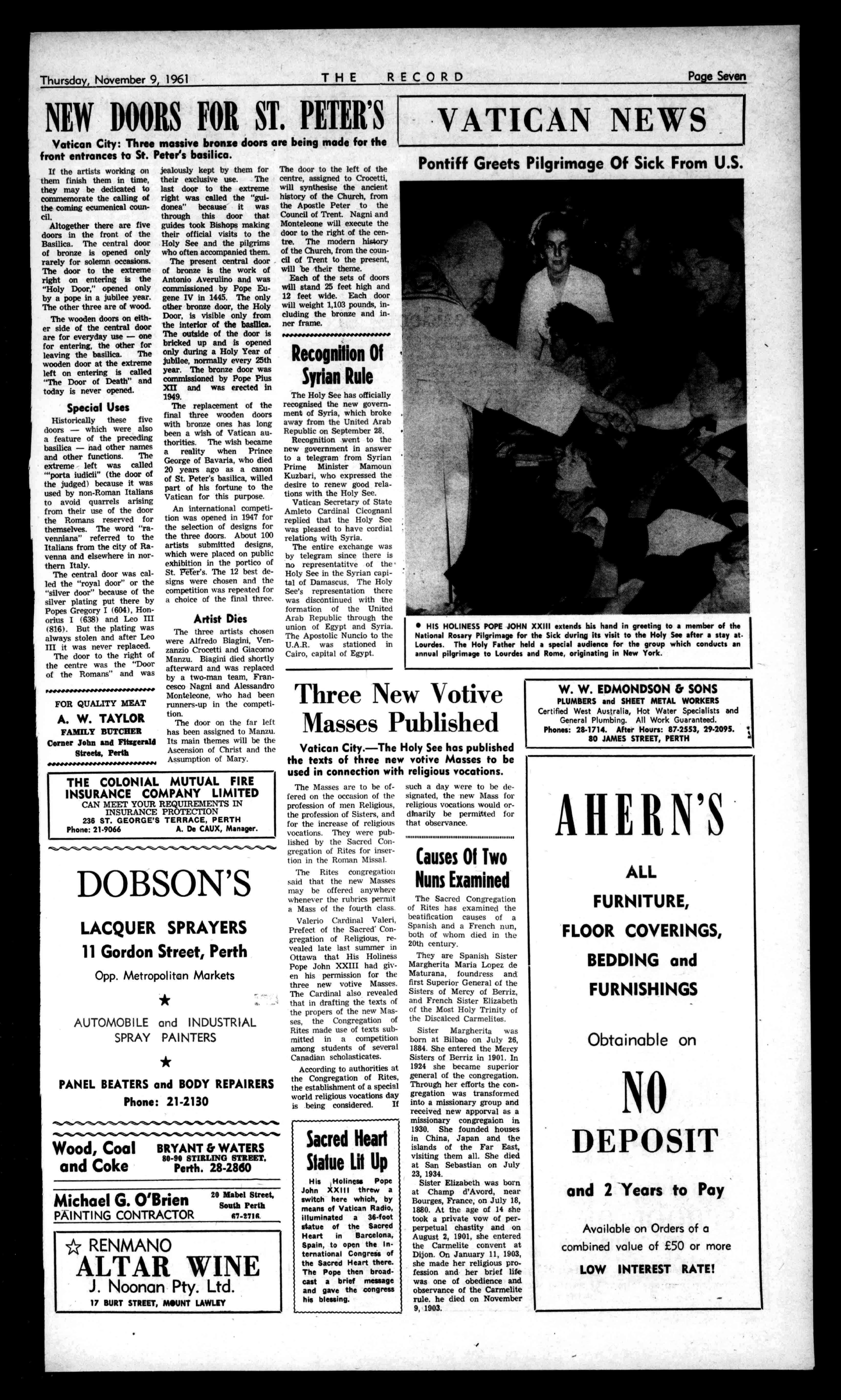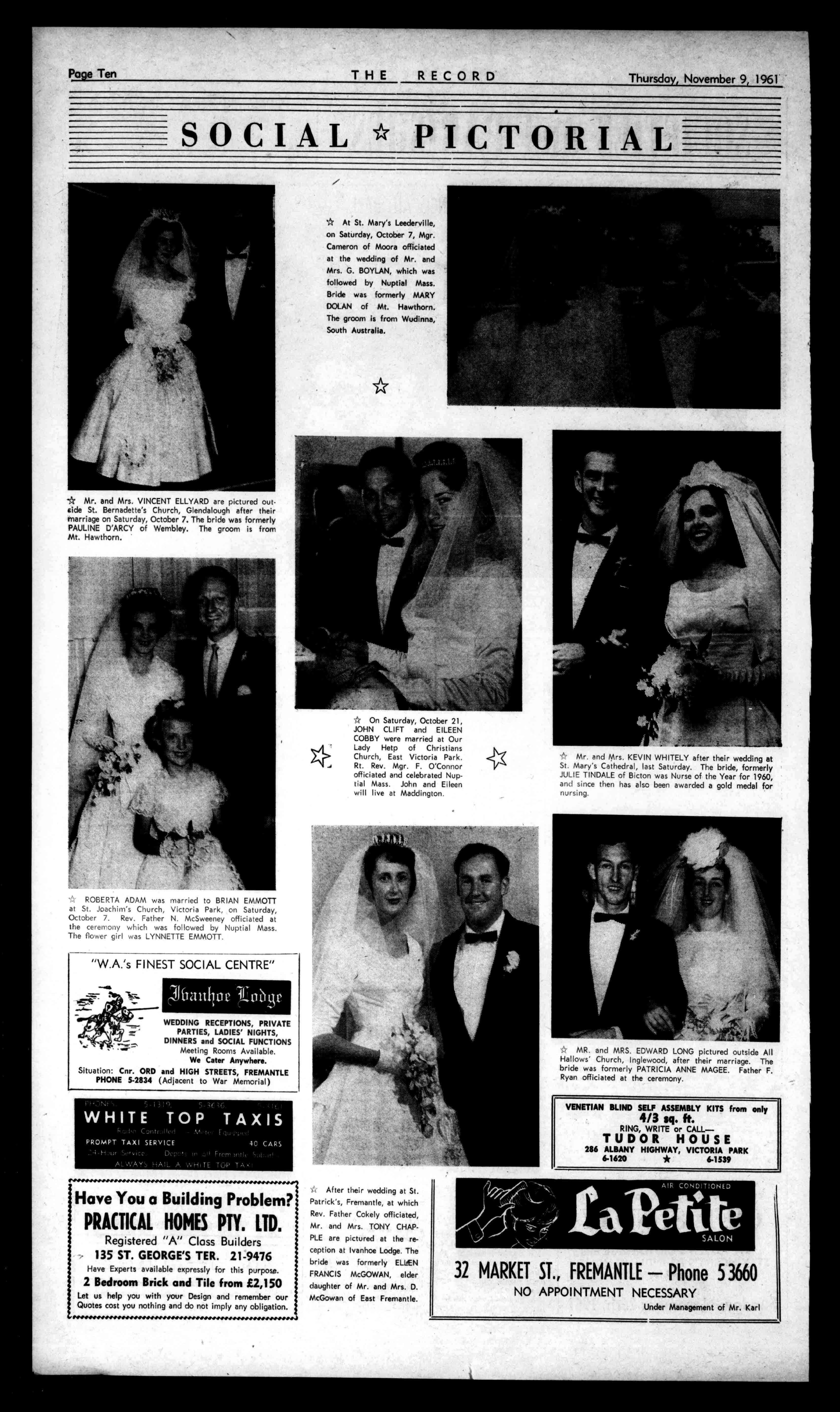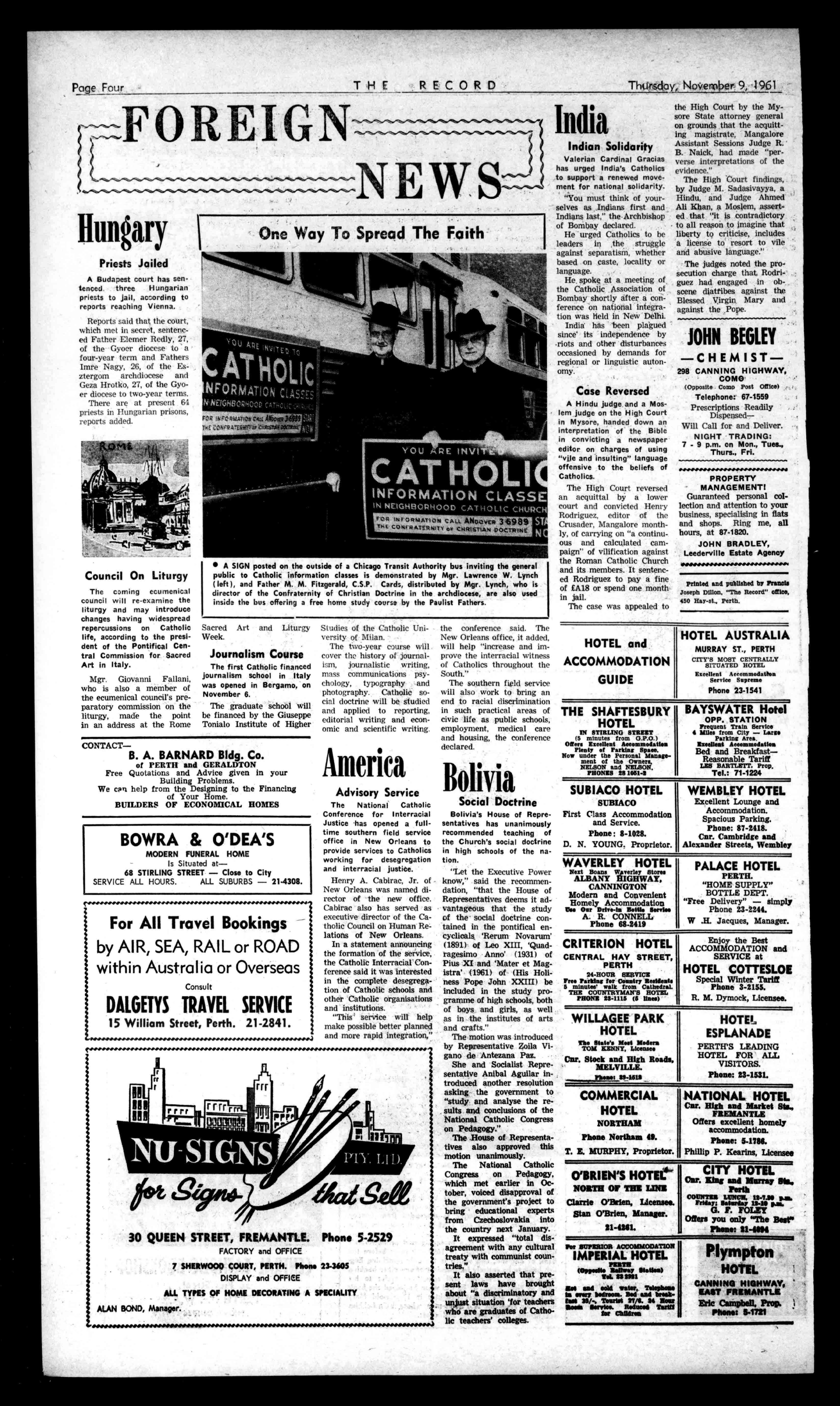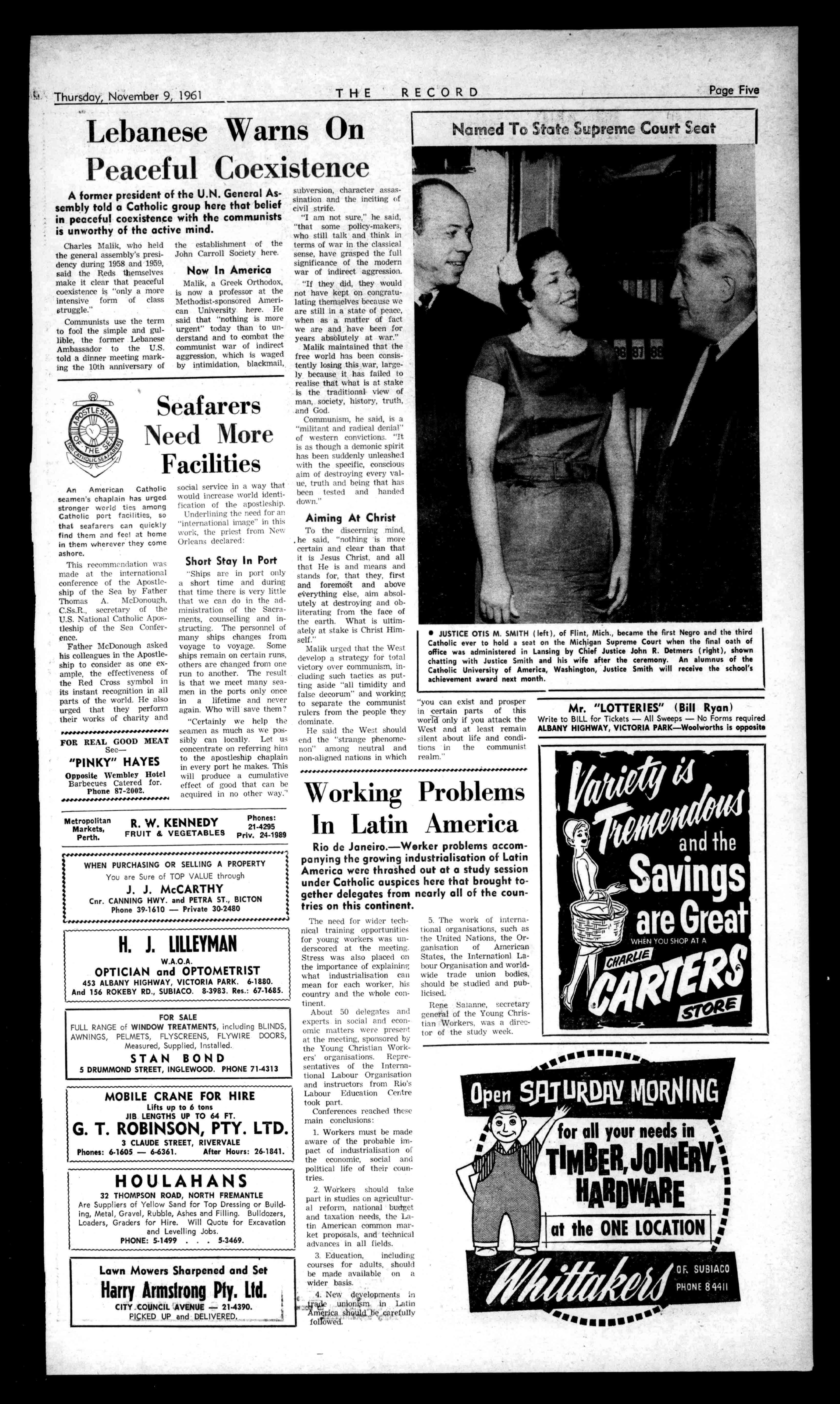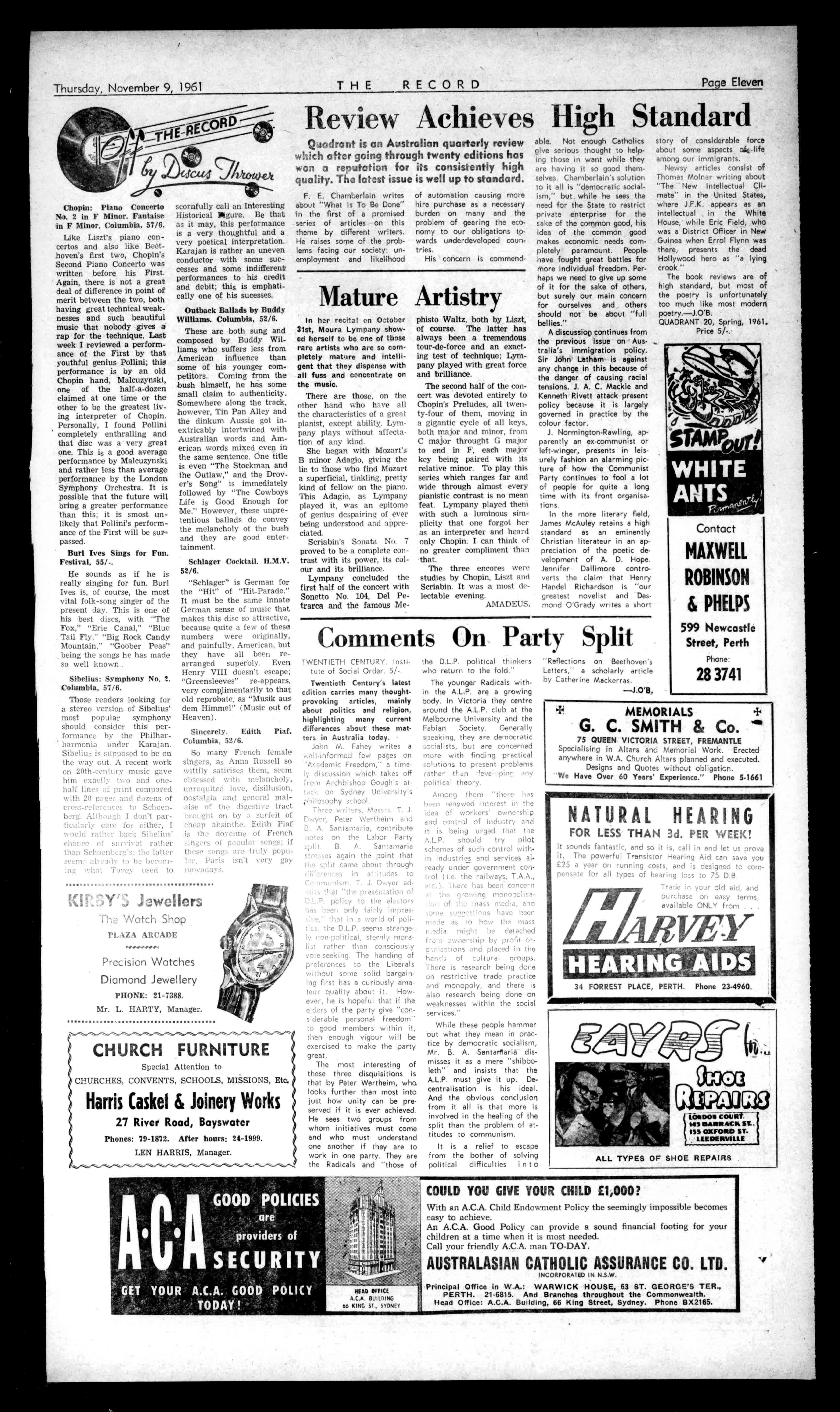 EUROPEAN CLUB NIGHTCLUBAND RESTAURANT 27LAKEST.,PERTH Telephone;23-1589 PARTIESandSOCIALS SPECIALLYCATEREDFOR (AlmanSundays). JASPERMOTEL S.A. Latestsir-conditionedbedrooms,privatebathroomand toikt.PollMotelfacilities havebeenaddedtothe hospitalityat JASPERGUESTHOUSE IIJASPERST.,HYDEPARK ADELAIDE,8.A.71-7556. BedandBreakfitatTariff: Motel:35/,28/-. GuestHouse:Mb,12/6. PractitionersinAll BranchesofDentistry 790-794HAYSTREET, PERTH Phones:21-7484,51-7837 Emergency:71-2601,86-1639. Principals:JosephL.Rogers; AlfredL.Rogers,Dip.D.B. ConvenientCarPartingCmBo ArrangedbyPhone THERECORD,450HAYSTREET. BoxR1279,G.P.O.,PERTH Telephone21-2837. SubscriptionRates: Allcorrespondenceshould E2/5/6peryear beaddressedtoThe £112/9perhalf-year Manager, Engagements,Births,Marriages,Deaths,InMemoriam, Accommodation,Wanted,ForSale,andallclassesof ClassifiedAdvertisements:4/-forthefirst10words, then1/6foreveryfivewordssrpartthereof. DISPLAYADVERTISING:15/-persinglecolumninch, orbycontractrates.-ApplyAdvertisingDepartment CLASSIFIEDADVERTISEMENTS