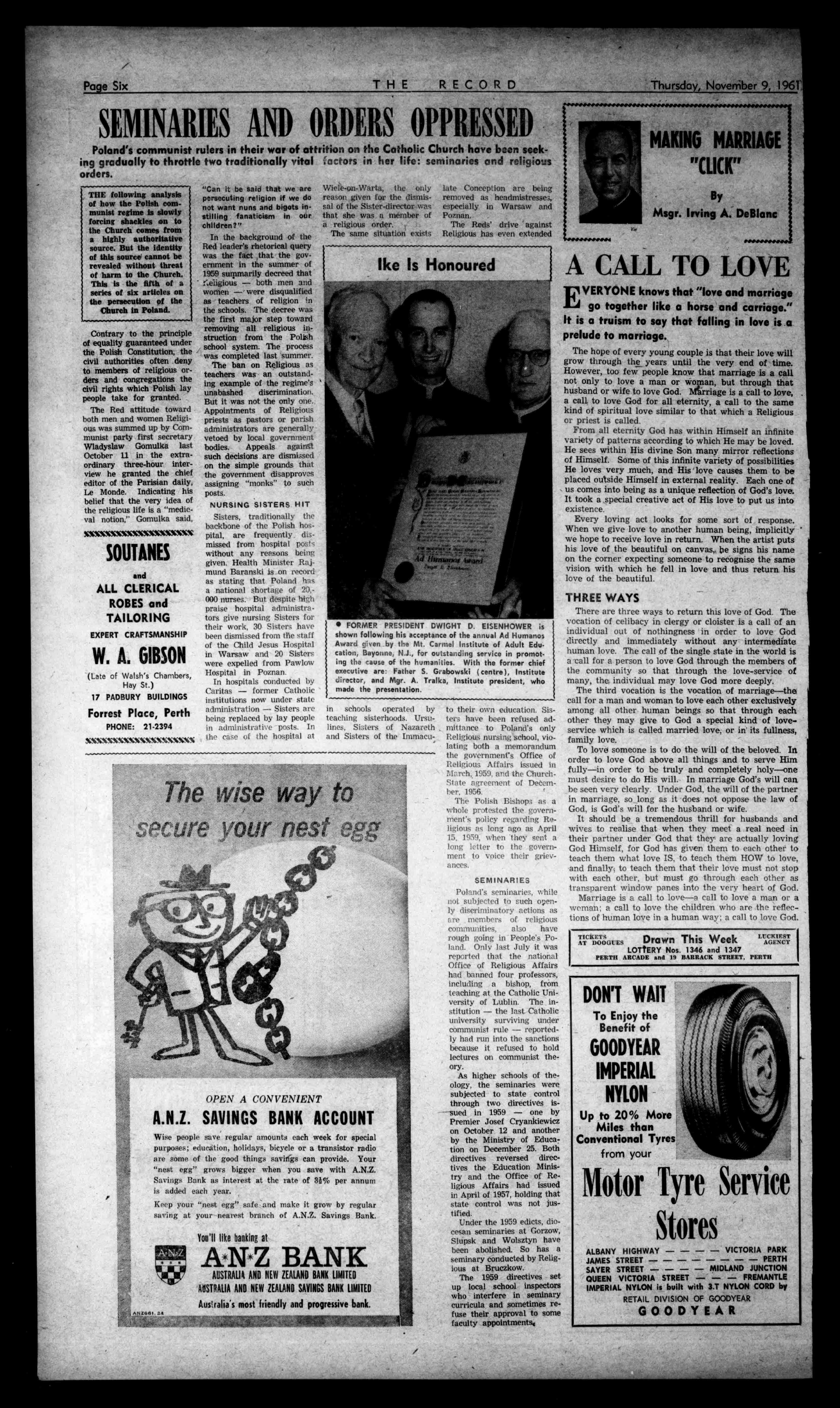 ObtainYourSuppliesofFreshandFrozenFishfrom ROSSINTERNATIONALFISHERIES HeadOffice:7CLEAVERSTREET,WESTPERTH Phones:28.3438,28-4511 SPECIALQUOTESFORCATHOLICSCHOOLS, HOSPITALSandINSTITUTIONS. FreshFishandShellFishAvailableDaily SmartFarmer Farmer:Wheredoyou wash? Camper:Inthespring,of course. Farmer:Isaidwhere,not when. REMEMBER! YOUR CREDIT IS GOOD AT Walsh's THE MEN and BOYS' STORES Branches: PERTH 707.11HAYSTREET Telephones: 23-2707 23.2708 23-2709 FREMANTLE 75HIGHSTREET Phone:5-2260 VICTORIAPARK 889ALBANYH'WAY Phone:6-1720 COTTESLOE 32NAPOLEONSTREET Phone:3.1373 MIDLAND JUNCTION 29G.N.HIGHWAY Phone:74-1841 LEEDERVILLE 117OXFORDSTREET Phone:8-3128