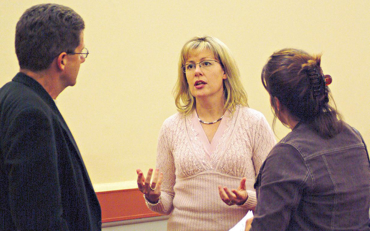 Ms Erceg talks with parents after the seminar held at the Catholic Education Office in Leederville last week. The semianrs are held on the third Monday of each month.
