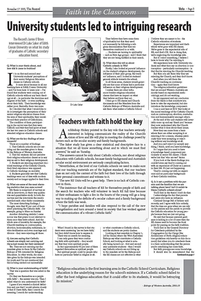 Read what our readers had to say following on from our special report on the new study of students emerging from Catholic schools - 3 pages of letters. Pages