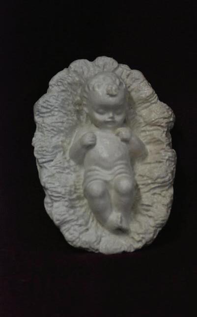 At the front of the Crucifix’s large base is fixed a silver plate, also inscribed in Celtic design. The plate has an opening in the centre which houses a relic in the form of a miniature cross, under which is a small label – “S. Crucis D.N.J.C.”