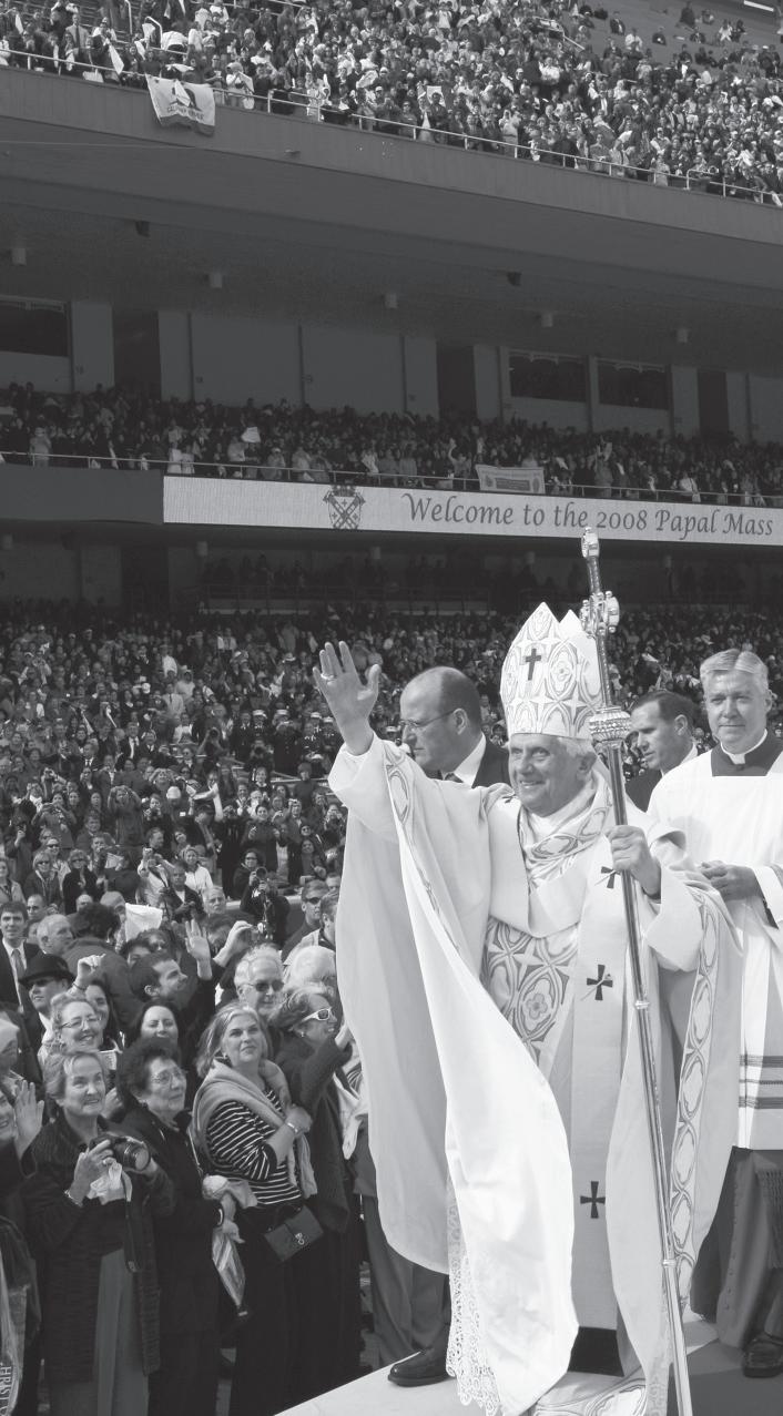 In April, Pope Benedict made his first papal visit to the US, spending six days in Washington and New York and addressing the UN General Assembly. Among the highlights were a private meeting with victims of clergy sex abuse, Masses at baseball stadiums in both cities and a solemn visit to ground zero to pray for vic-