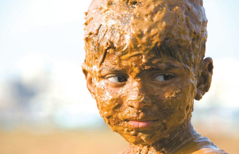 Fun in the slums: Jamal, played here as a boy by Ayush Mahesh Khedekar, in an hilarious moment from Slumdog Millionaire, a scene which portrays his dogged spirit and unfailing hope in good things, despite living in India’s slums.