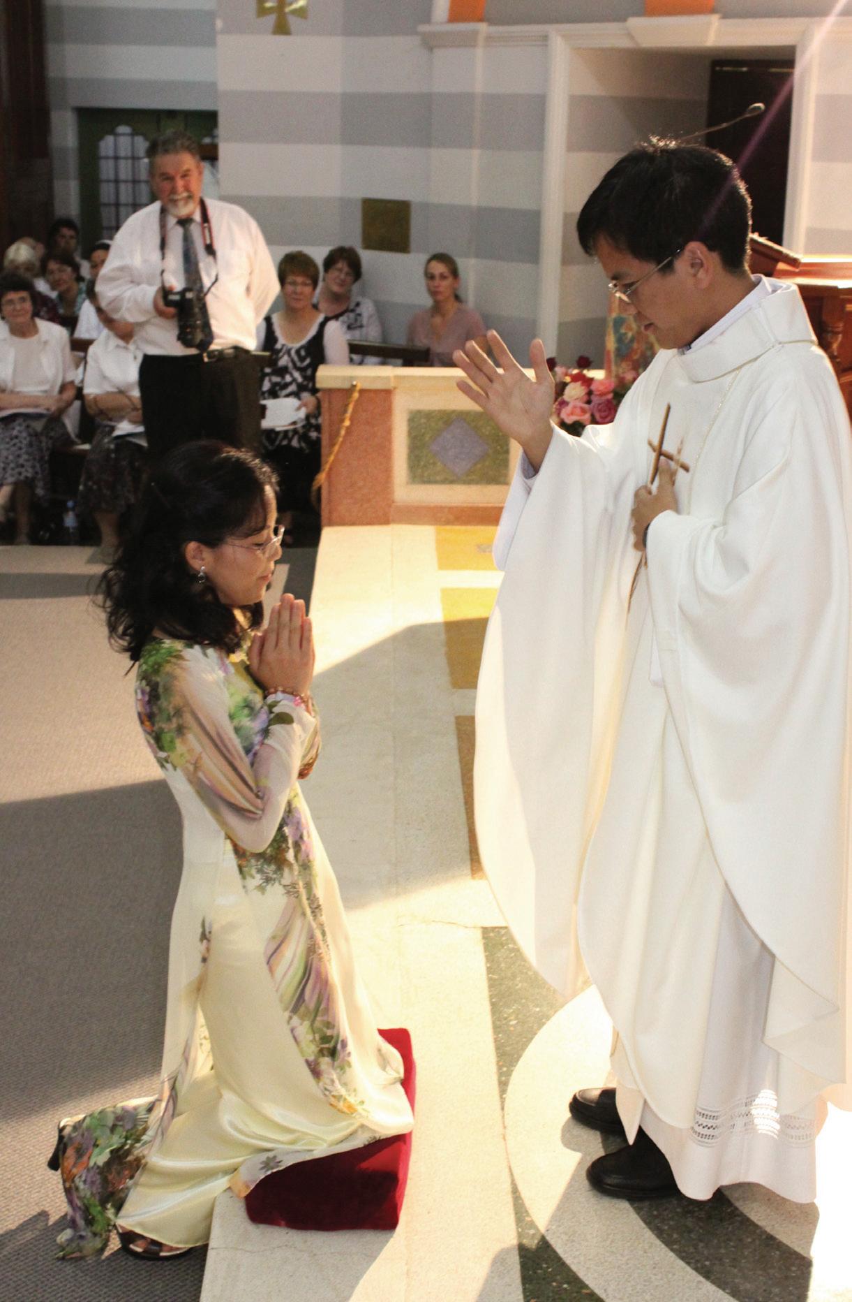 Brothers Alex Bogoni, a former Perth computer programmer, David Dono, whose parents migrated to Australia from El Salvador, and Gabriel Pophillat, a Singaporean, received the distinctive blue-grey garment of the order during the rite of investiture with the Franciscan habit in the Toodyay parish Church of St John the Baptist.