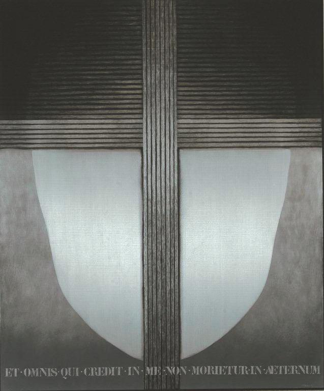 When I first saw the work The enigma of Christ it reminded me of the coat of arms used by the Carthusian order and the motto associated with it. The Carthusian order is a contemplative order of monks founded by St Bruno in the 11th century. Its motto is Stat Crux dum orbis volvitur –The cross stands while the world turns.