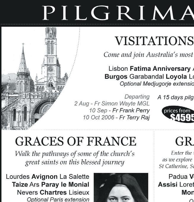 Return visit of Fatima International Pilgrim Virgin Statue to Perth. Venues include St Patrick’s Basilica, Fremantle, Redemptorist monastery, concluding with Mass, and crowning at St Mary’s Cathedral 22 August. (Queenship of Mary). Further details to follow. Enquiries: 93418082, Mobile 0413 707 707.
