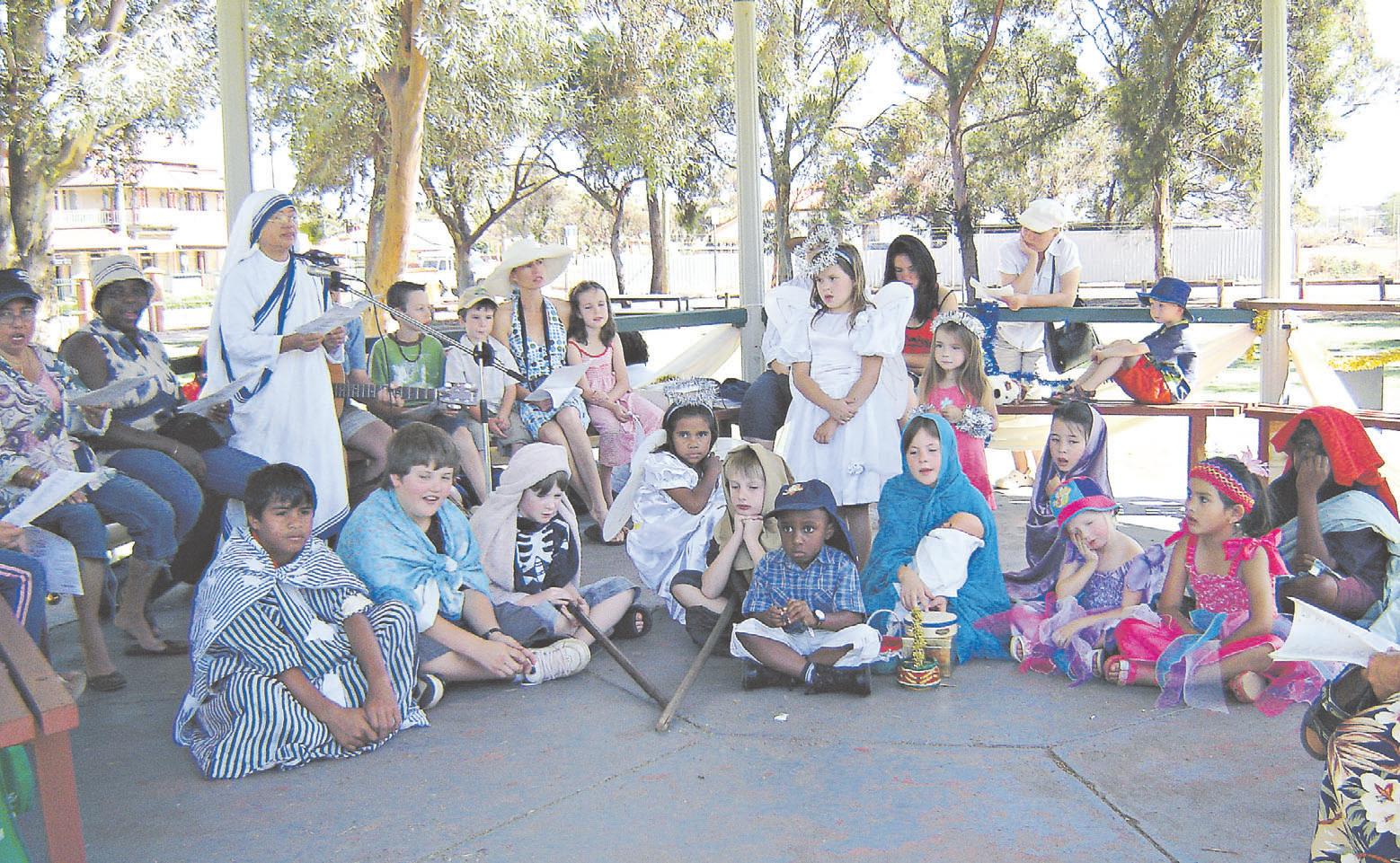 The largest and busiest day of celebration came on December 16 when an open invitation was extended to all parents and children of the city to gather at 9am at the Boulder Railway Park for carols, followed by a nativity play by children, games, a picnic barbecue lunch, and a visit from Santa Claus with a large container of presents for all.
