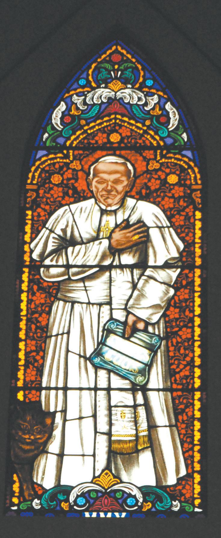 He’s pictured at the foot of the late Pope John Paul II, who died in 2005 - around the time the new parish was being planned and built.