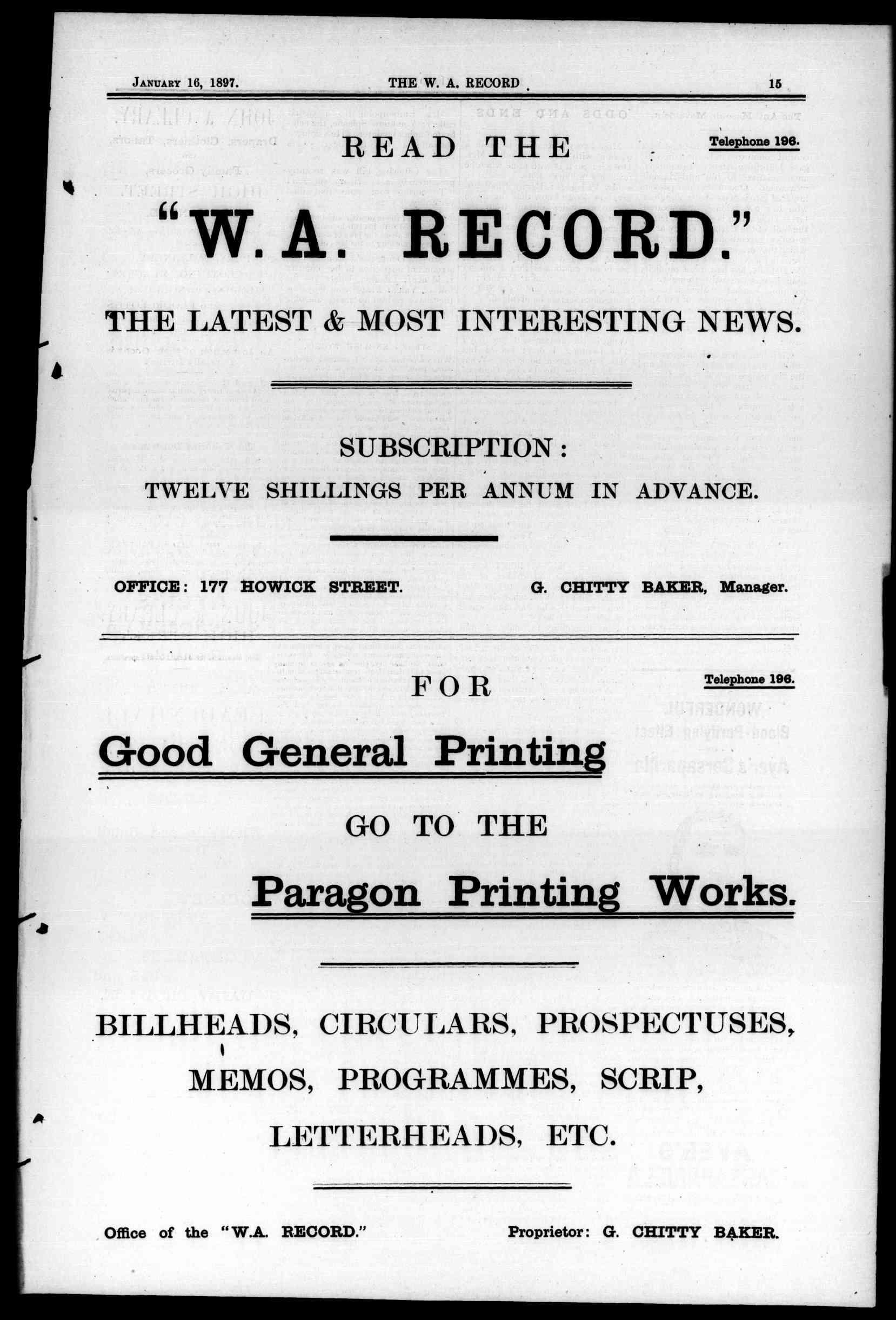 The Record Newspaper 16 January 1897