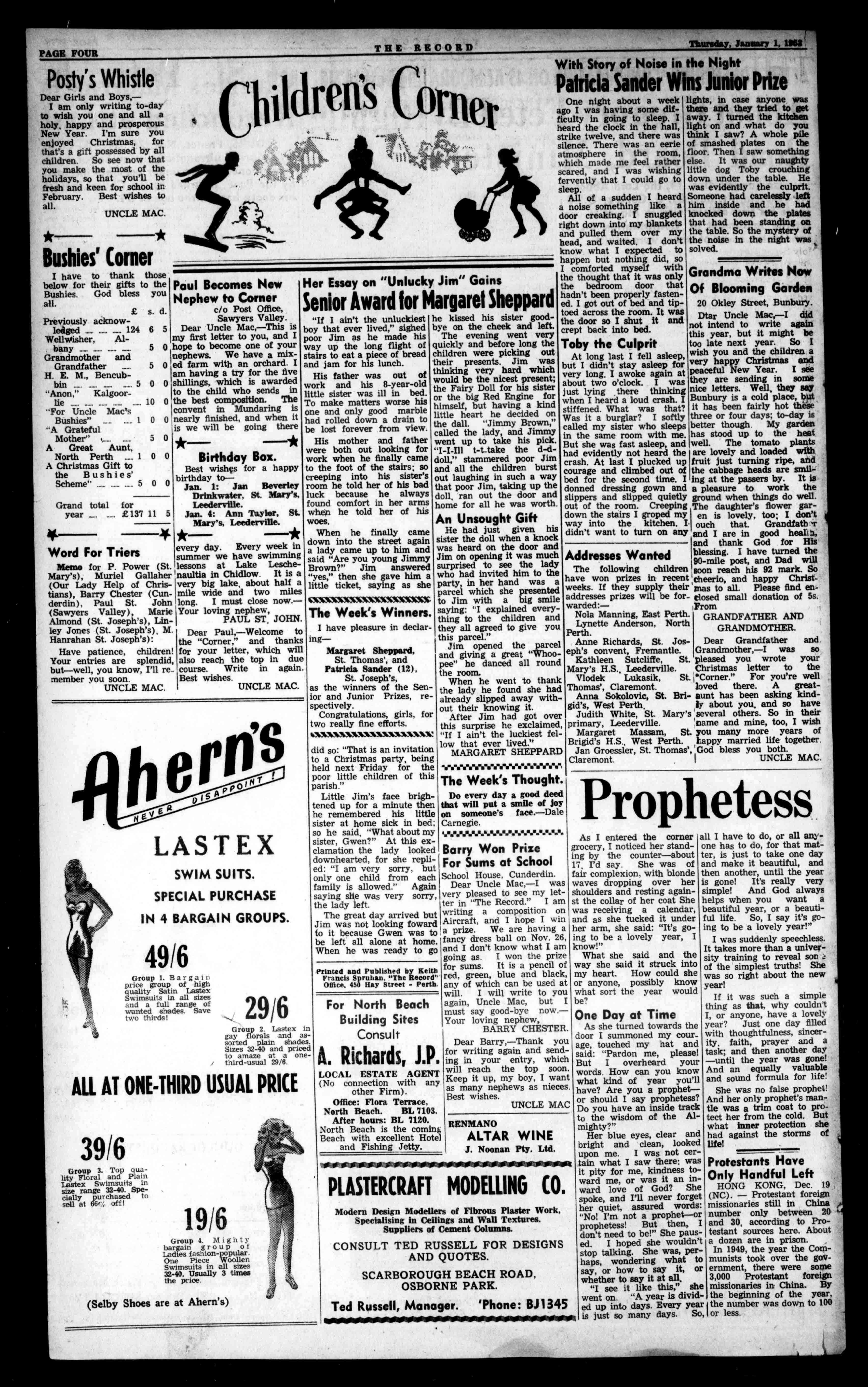 1?eco ji Price: Nuns OpenaConvent No.2,580(RegisteredatpostP.O..Perth,4or transmissionbyasaNewspaper).Perth,Thursday,January1,1953