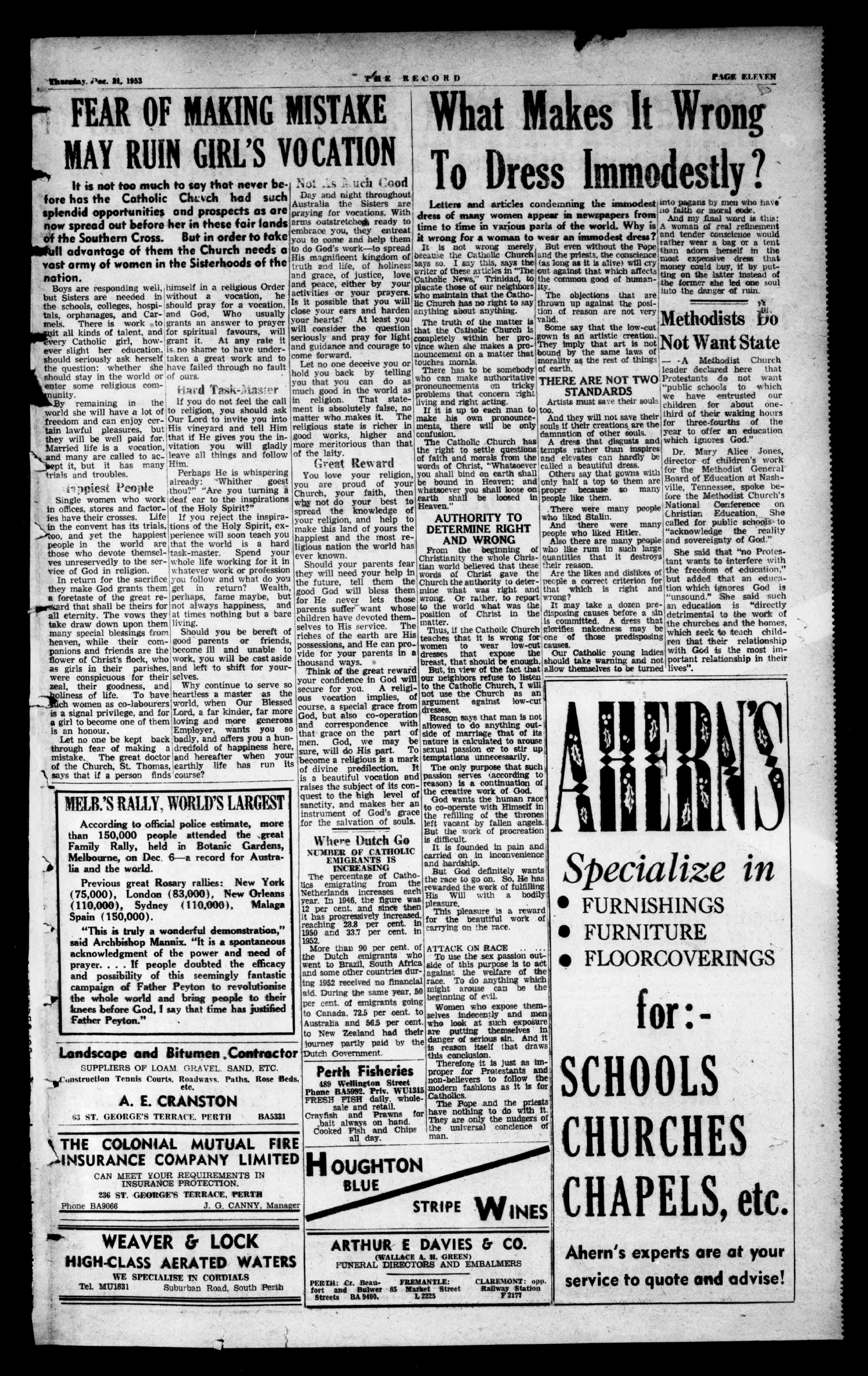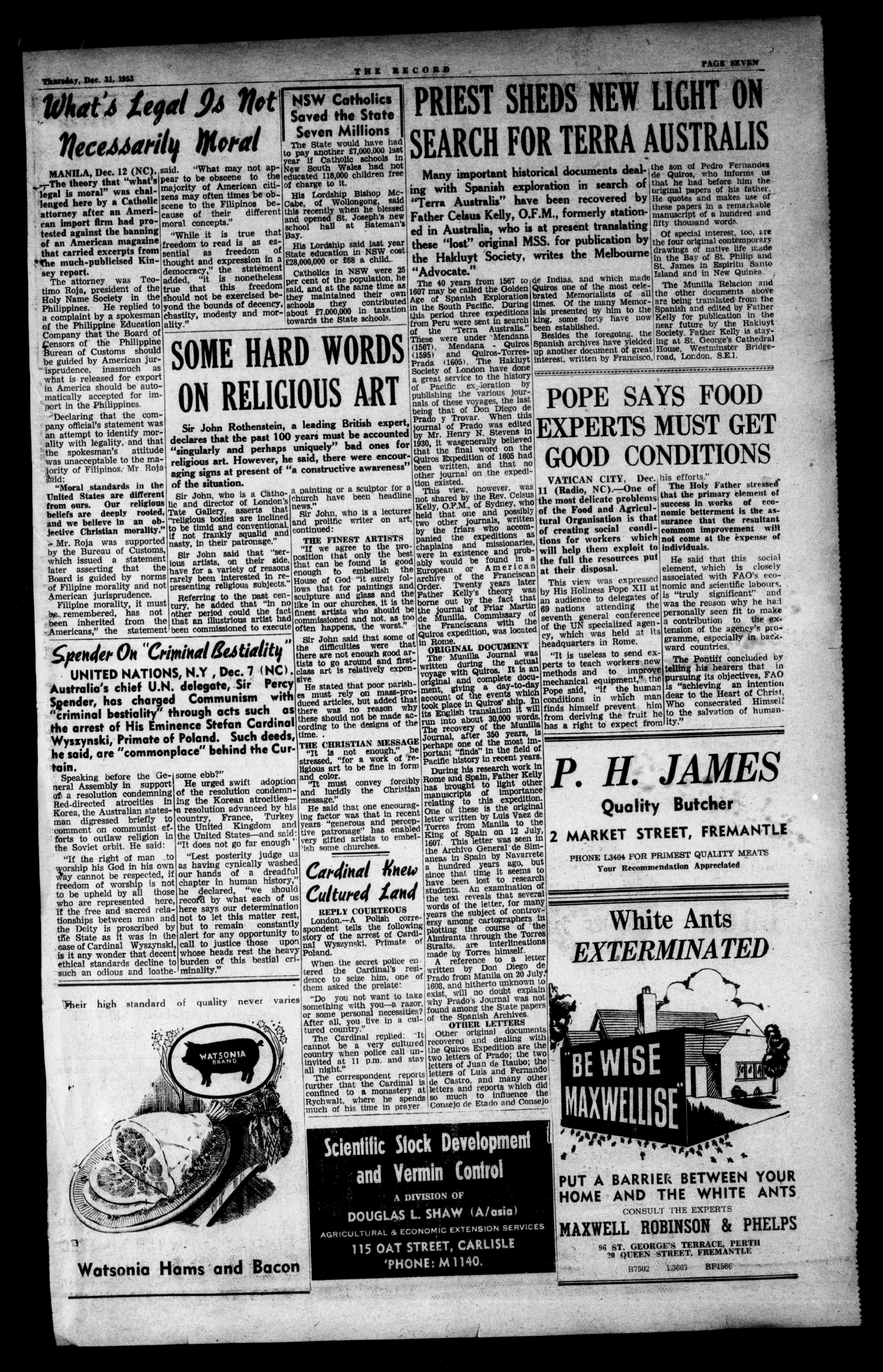 the1950Con meetingGagger()wase tothecouncilsponsoring congress,anddefiedaVati canordertowithdraw. MEADSON& TOLLEYS HOSPITALSPECIAL BRANDY Haystreet,Perth. SHENTONPARK SQUAREDANCING INI OPENAlit BehindTheChurchinHenryStreet,Sublet°. COMMENCINGFRIDAY,JANUARY15th ADMISSION.4 MurroyStreet, Perth HOTELAUSTRALIA PHONElm BF1541 COOPER'SCOOLERLARGERLAGERS NextBoans 0--