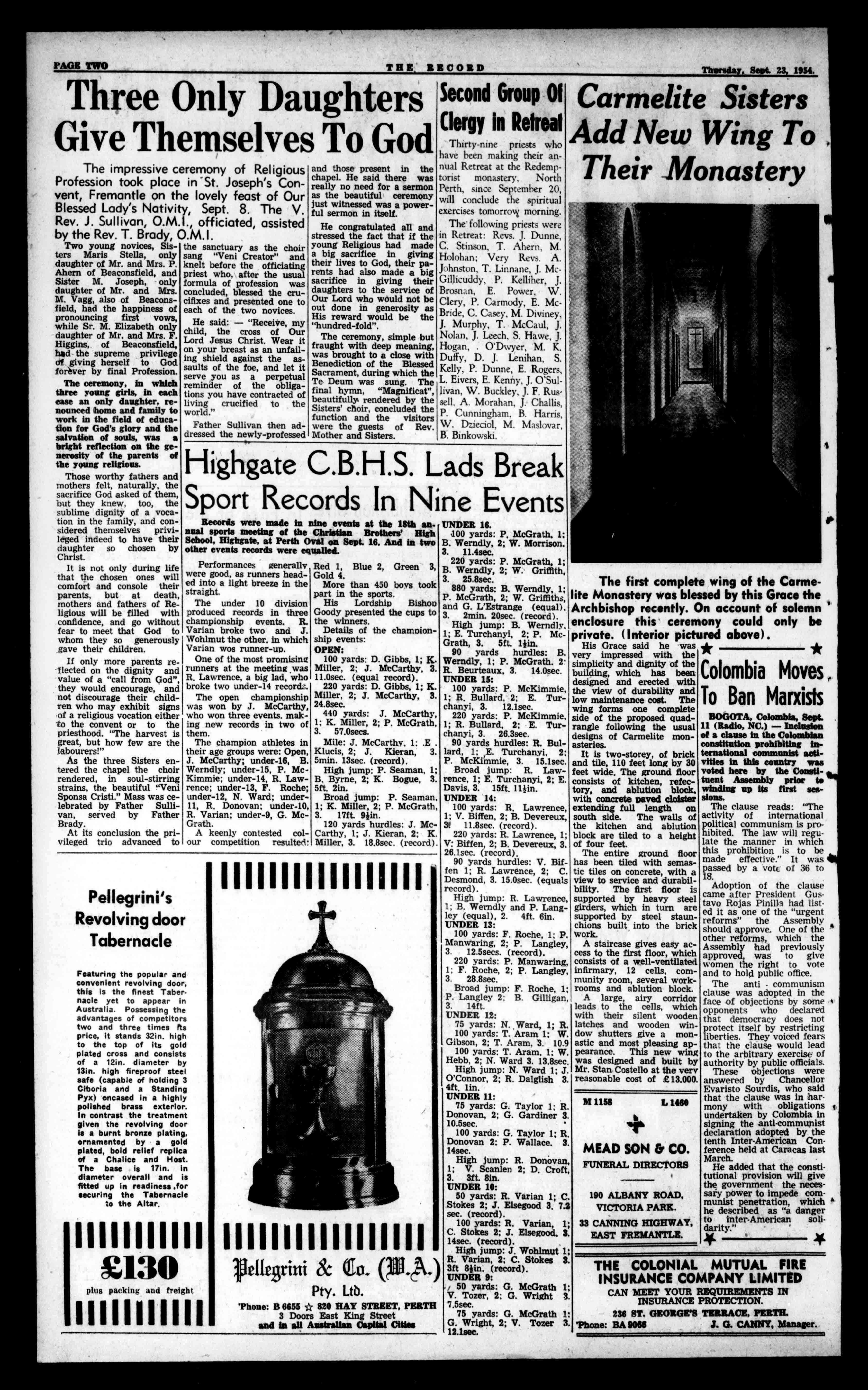 Recordsweremadeinnineeventsatthe18than- nualsportsmeetingoftheChristianBrothers'High School,Highgate,atPerthOvalonSept.16.Andintwo othereventsrecordswereequalled.