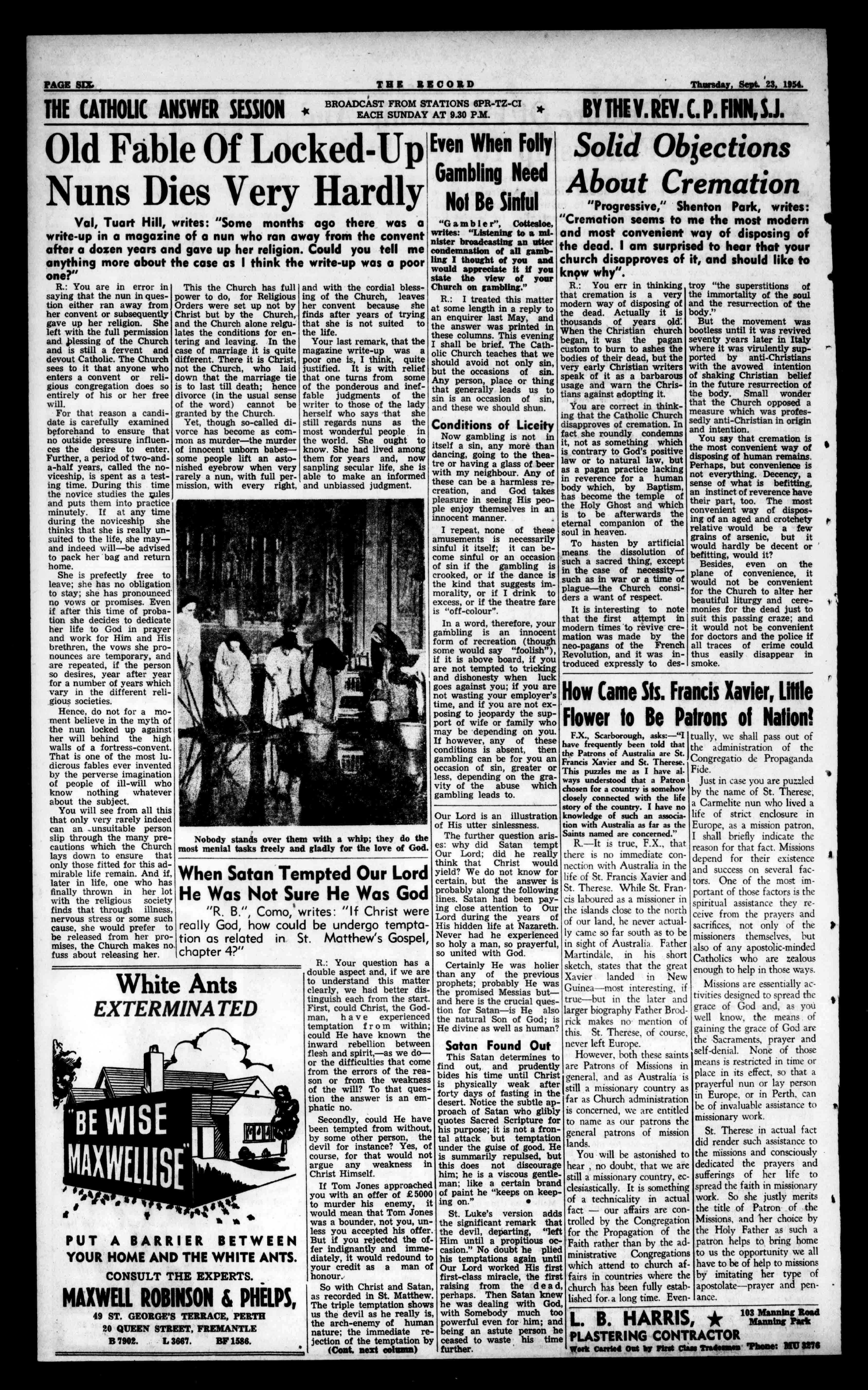 Catholicswhosufferfro anyformofRHEUMATI complaintsareinvitedto callandinterviewou CatholicConsultantwh willgiveyousincere,gee nuineandhelpfuladvi andabetterunderstanding ofthebasiccausesofy0 condition.Wherenecessary inadditiontoourPowd simplebeneficialhom Treatmentswillbesuggest edandaswehaveachie overan80%recordofsue cesswewillapproachyc particularcasewithev confidence.Mayweku..., yours. A4weeksTreatmet esasaccnnclirs:ivicerrt11mnstruct andSpecialConcessionRa Vouchershouldyourcomp laintrequirefurthertreat meatcostsonlyf.1PaFreeCallorwrite.STRA,jTONSRHEUMATICPO'41 DERPty.Ltd.92aBarra.r'l Street(overHomeAids 'PhoneB7910.