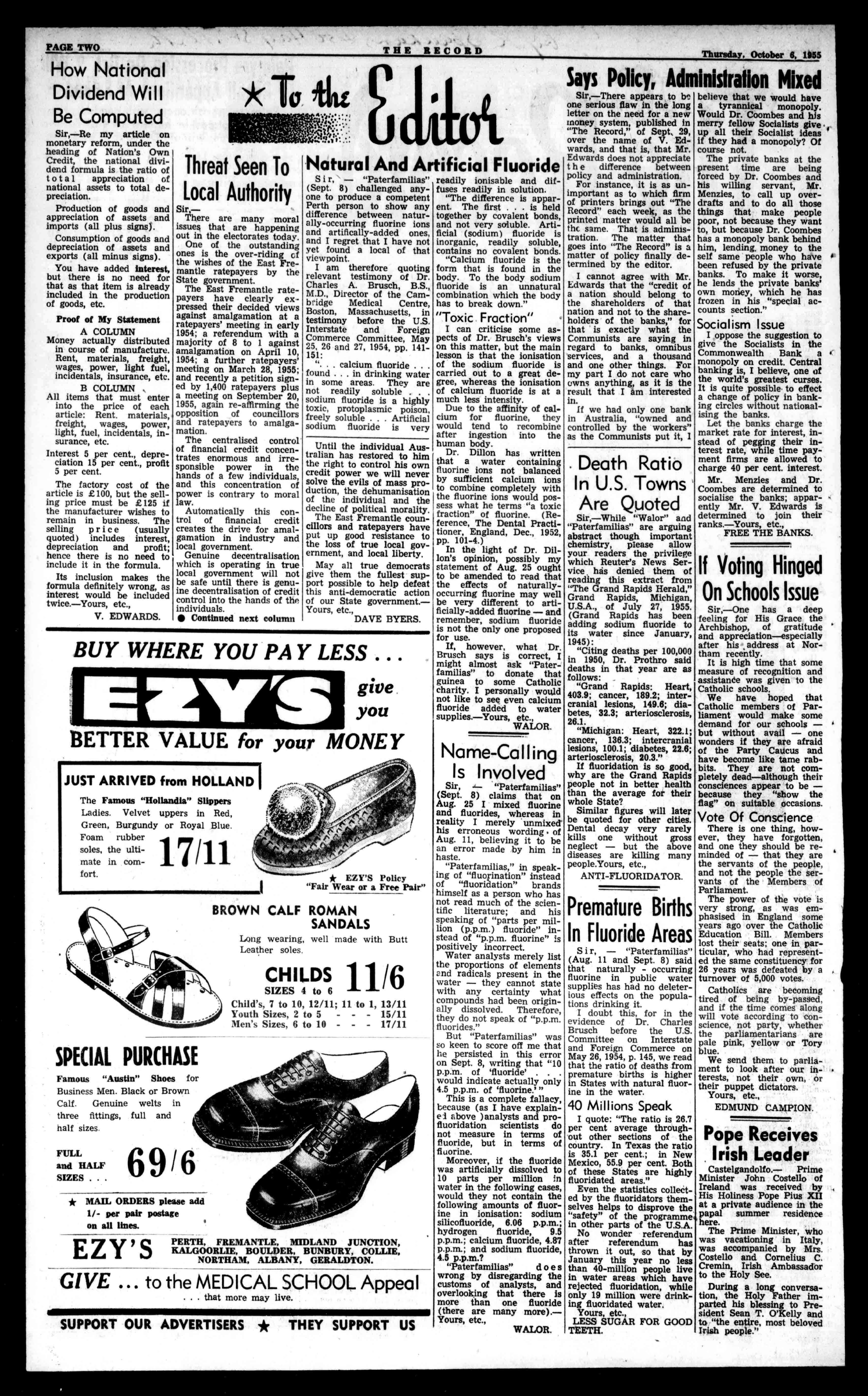 TheEastFremantleratepayershaveclearlyexpressedtheirdecidedviews againstamalgamationata ratepayers'meetinginearly 1954;areferendumwitha majorityof8toagainst amalgamationonApril10, 1954;afurtherratepayers'meetingonMarch28,1955; andrecentlyapetitionsign- edby1,400ratepayersplus ameetingonSeptember20, 1955,againre-affirmingthe oppositionofcouncillors andratepayerstoamalga- mation.