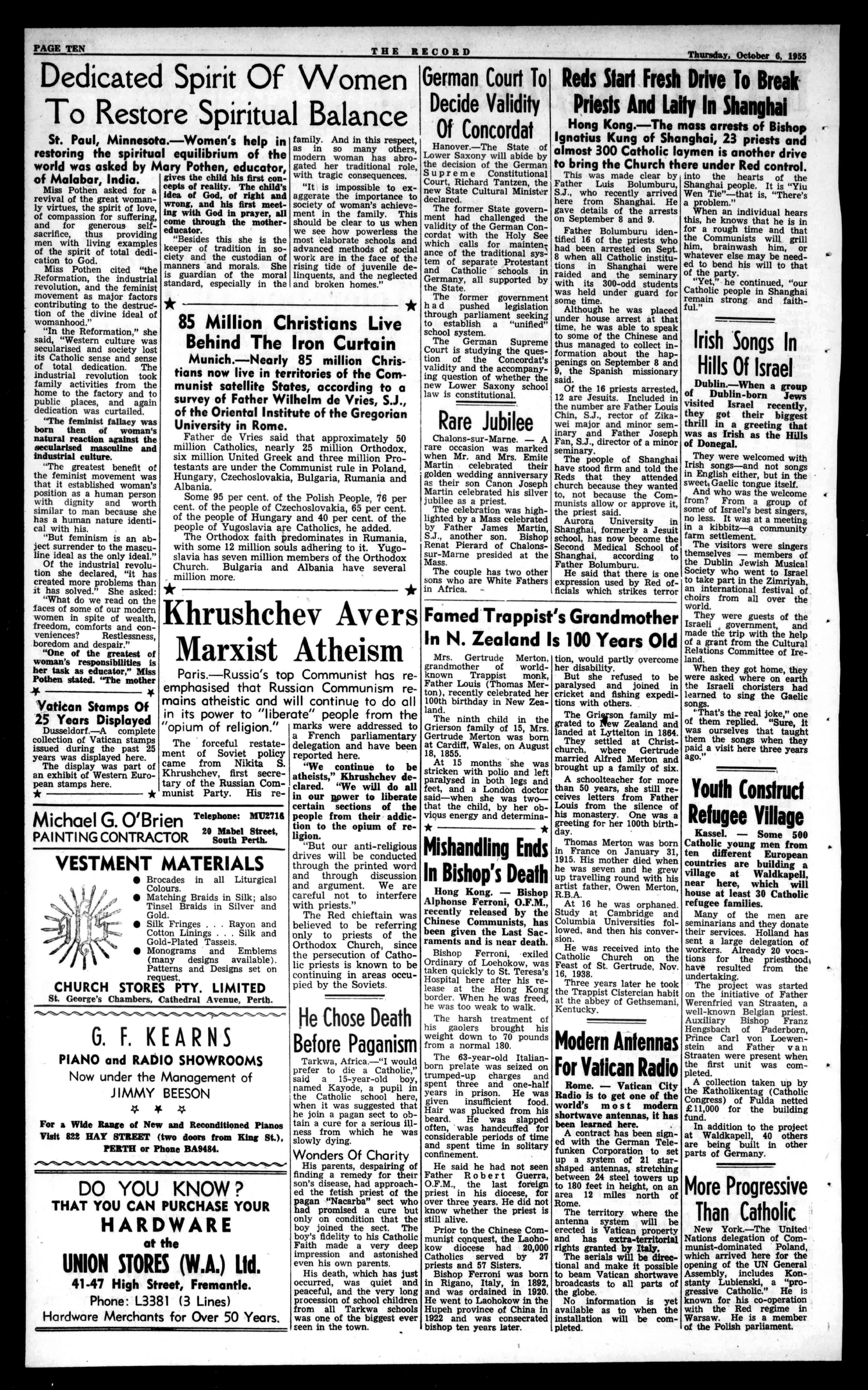 lins.Rev.J.F.Russell.Rev,J. Lyons.SistersofSt.Johnof God.SistersofSt.Joseph. Boulder,SistersofSLJoseph, Kalgoorlie,SistersofMercy, OblateFathers,ChristianBrothers.Geraldton,SenatorS.Paltridge,Hon.R.Moore.Mr.and Mrs.A.Hall.Mr.andMrs.Cole. Mr.andMrs.J.Hurley.Mr. andMrs.Naughton,Mr.and Mrs.S.Hall.Mr.andMrs.M. Epis,Mr.andMrs.H.Reidy. Mr.andMrs.Rampellini,Mr. andMrs.H.Golding,Mrand Mrs.A.Cahill.Mr.andMrs. BillSmith.Mr.andMrs.J. Buzzaca.J.Fitzsimmons,J.E Gray,E.Geresich,Mr.T.E. Ardagh,Mr.M.Rakich.T. O'Connor.J.J.Hannan,Mr.W. F.O'Brien.Mr.andMrs.Rowe, Mr.Cressey,M.D.Maguire. Mr.W.J.Kenneally,Mrs. DolanandB.Ddlan,Tom Dolan.MissMcMahon.D.J Kilderry.F.D.Ardagh.Lew Boylen,NevilleWard.A.Gazia. Mr.A.Boylen.K.Lynch,Mr. andMrs.Engelbrecht,Mrs.G. Brain.Mr.andMrs.J.W. Craig.MissI.Miller.Mrs.Sam Hill. £2(each):P.Reilly,T.Prindiville.Mr.andMrs.A.Schocker,TonyVisenten,W.Herreker.Mr.andMrs.H.Dance,Mr. Ryan.N.Muncaster.Mrs.Delivango.Mr.andMrs.Hawker, JohnDoogue.T.Robinson,Dr. DenisKarezub.Mr.T.G. Donovan.Mr.andMrs.F.McDonald.Mr.andMrs.Trahair. Mrs.Mezaros. £1/10/each)Mr.andMrs. Marhock.Mrs.MaryGreen, Mr.andMrs.Gorzola.