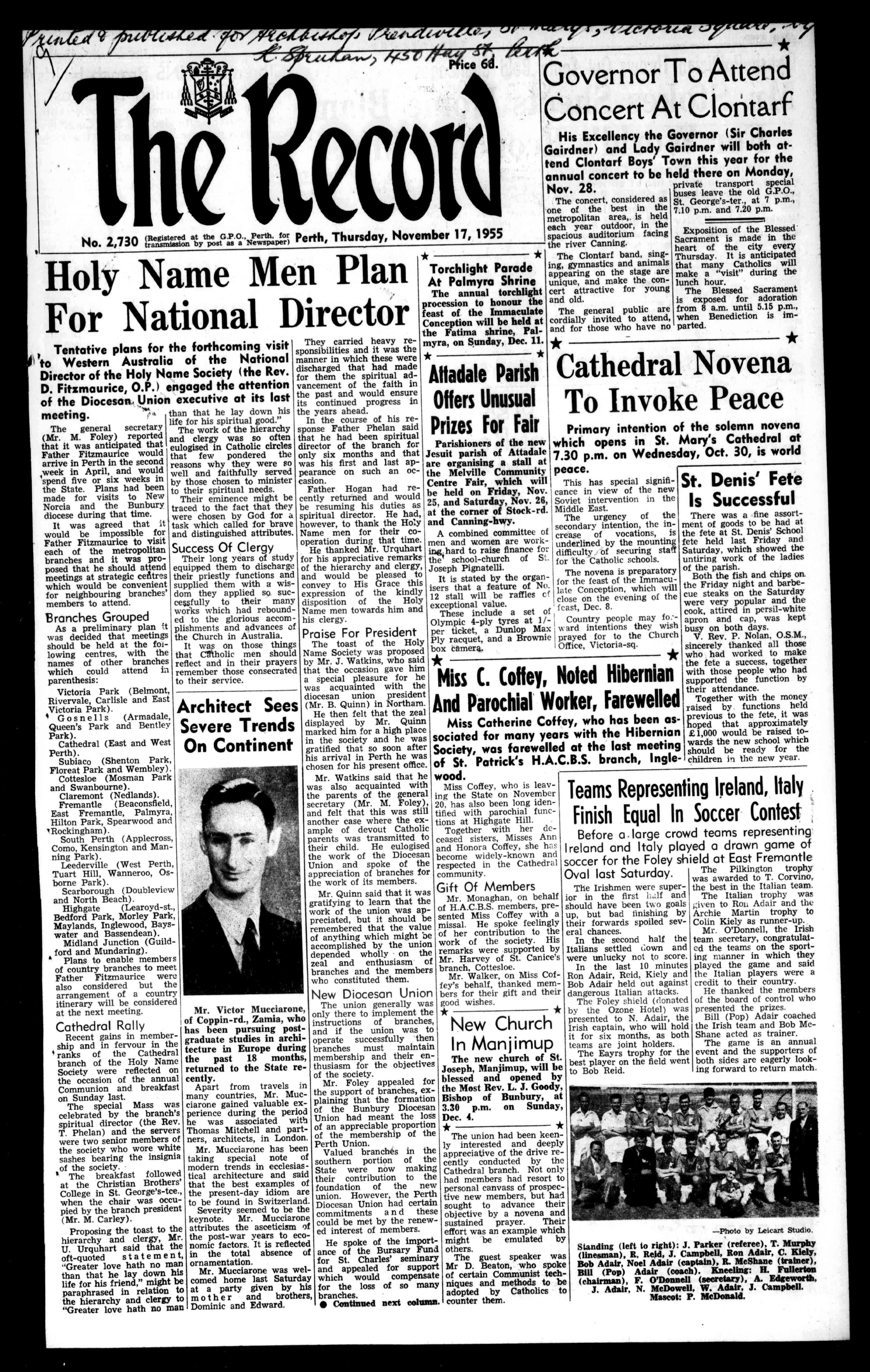 1*517 ice6d. tit.,-.1t11II CC() No.2,730(tritegisteredonattheiostG..P..0..,NPeewrstpefor*Perthi Ph,ursay Thd,November17,1955