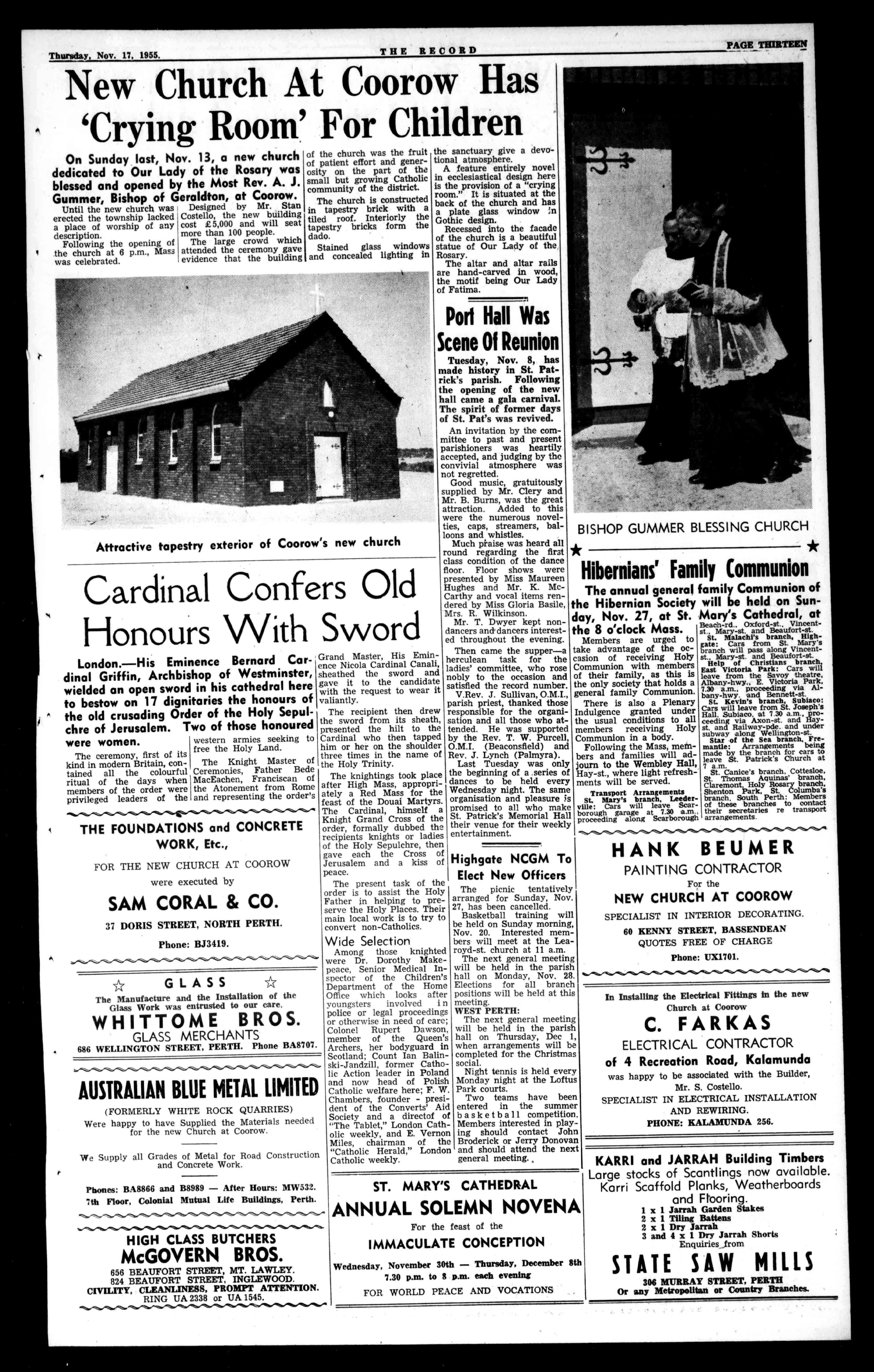 ThenewchurchofSt. Joseph,Manjimup,willbe blessedandopenedby theMostRev.L.J.Goody, BishopofBunbury,at 3.30p.m.onSunday, Dec.4.