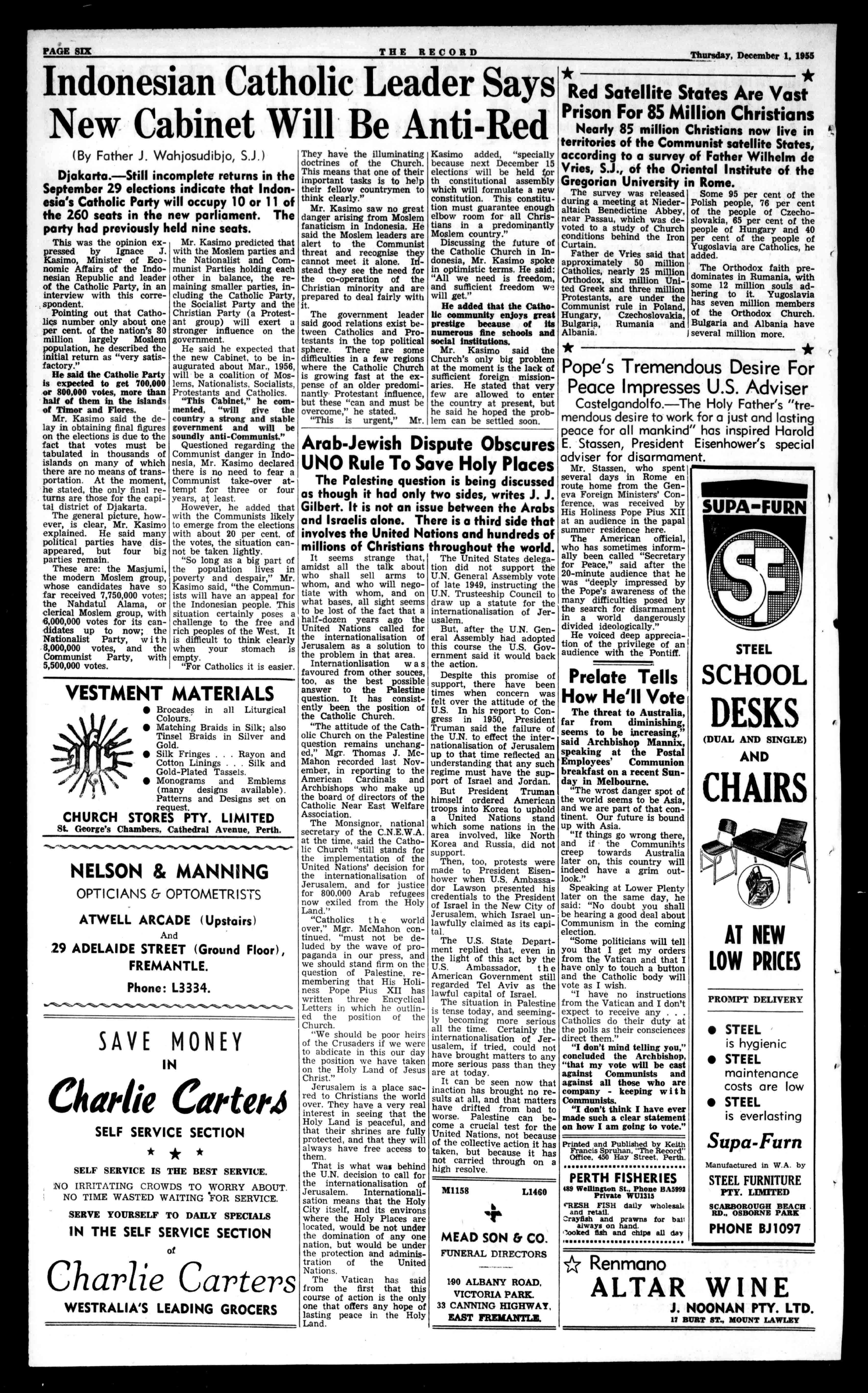 APPAIff. 1 " 11.11r?eCO Price6d. No.2,732(RegisteredattheG.P.O.,Perth,for transmissionbypostasaNewspaper)Perth,Thursday,December1,1955 ,(ce.CardinalCopellos ThanksforPrayers