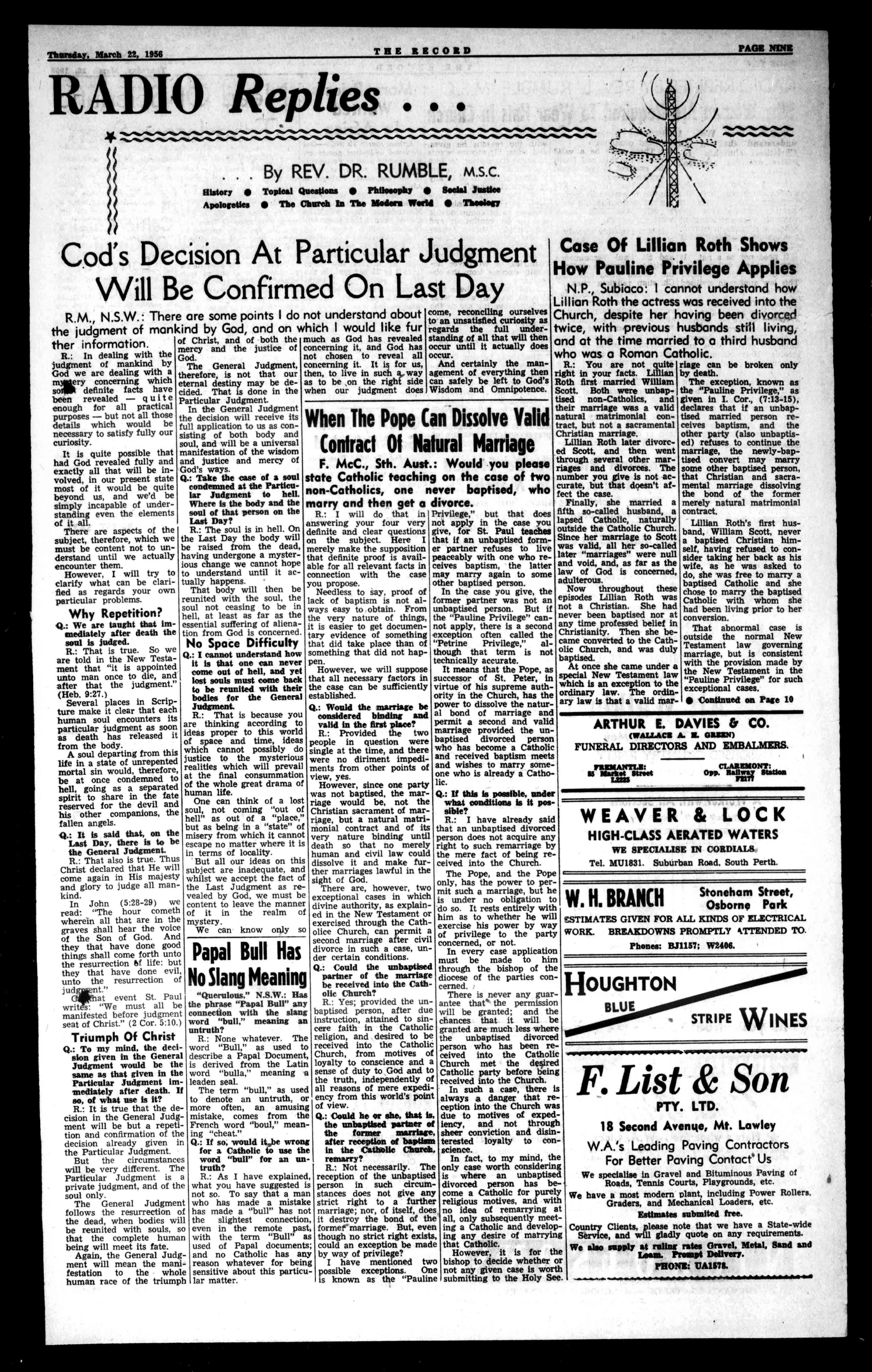 AftertheBishophadconcludedtheV.Rev.J.P. Wilkinson,C.M.,rectorof St.Charles'Seminary,spoke ineloquenttermsofthe missionofthepriestsin Australiaandinparticular oftheneedsoftheChurch inWestAustralia.