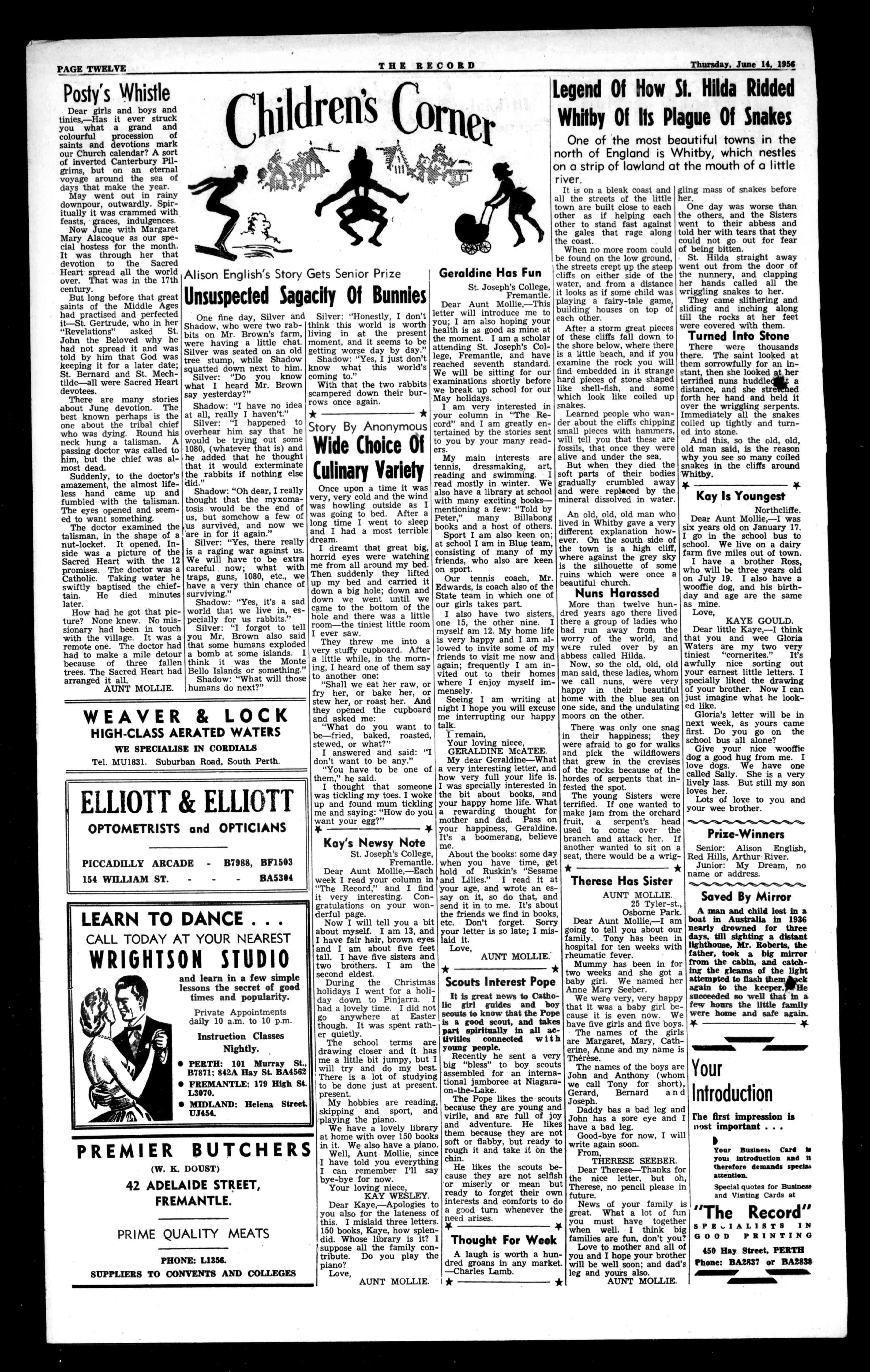 iLfe Nr17 le?eco It4111 11 e41.et-eere. 7-C-e-X"'remS71 ,/,d-ST-er 1.17,e-/ir ChristianBrothers GetVarsityPrizes Price6d. No.2760 !RegisteredattheG.P.O..Perth.for PerthThursdaJune141956 transmissionbypostasaNewspaper), y, , , CarmeliteFathersTake OverHiltonPark