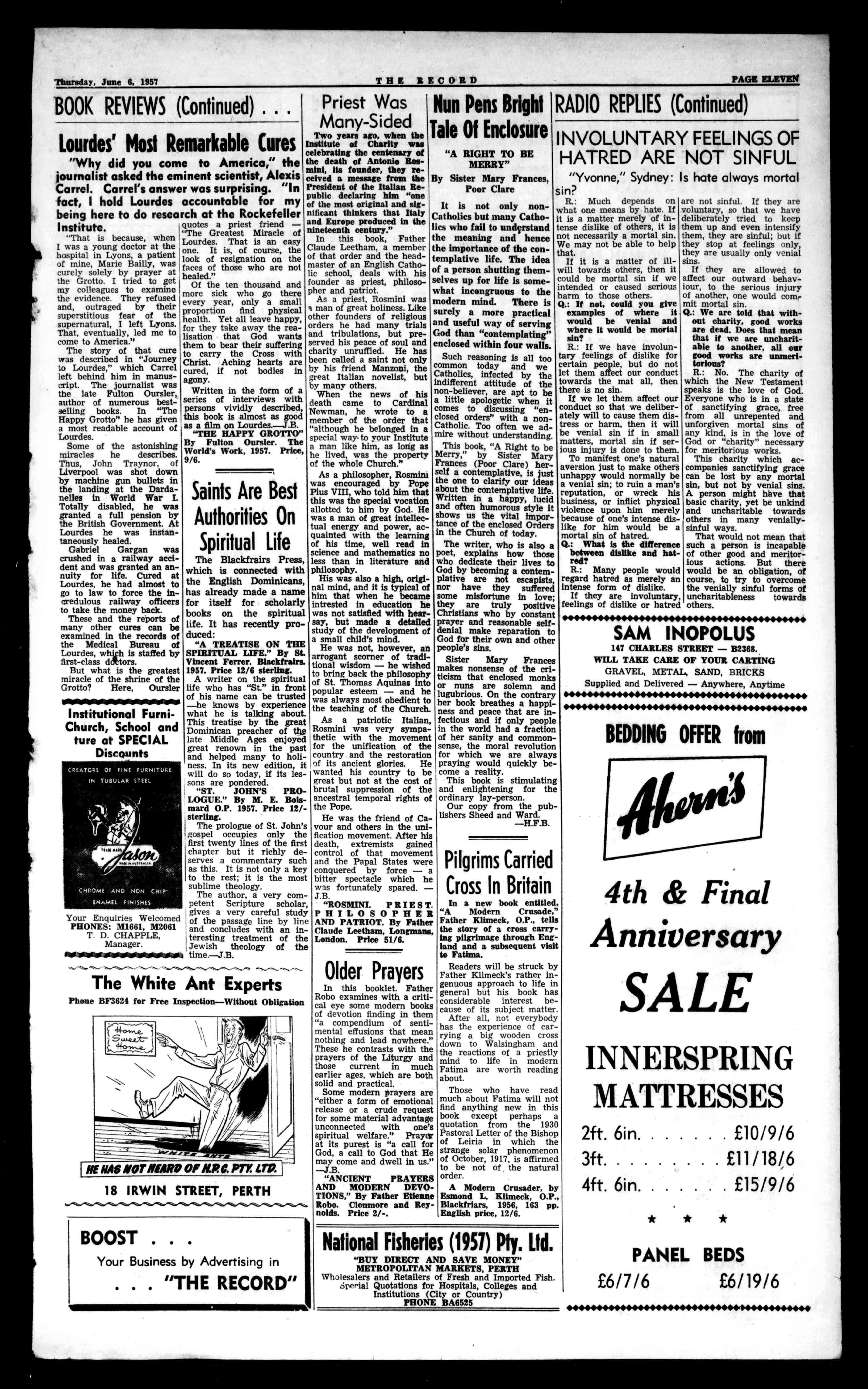 FatherCongardescribeslaboration.TheMystical hisbookasa"study."HeBodyofChristmustprosper doesnotpretendthatitwillandincreaseifallitsmem- answerallpossibleques-bersworktogetherforthe tionsandendalldiscussioncommongood.-J.B. onthematter.Itis,how- "LAY PEOPLE IN THE ever.averythoroughstudyCHURCH."AStudyfora for,althoughheisconcernedTheologyofLaity.ByYves dayhediscussestherole mainlywiththelaityoftoM.J.Congar,O.P.Bloomstheyhaveplayedinthehis-buryPublishingCo.Ltd., toryoftheChurch. London,1957.Price27/6