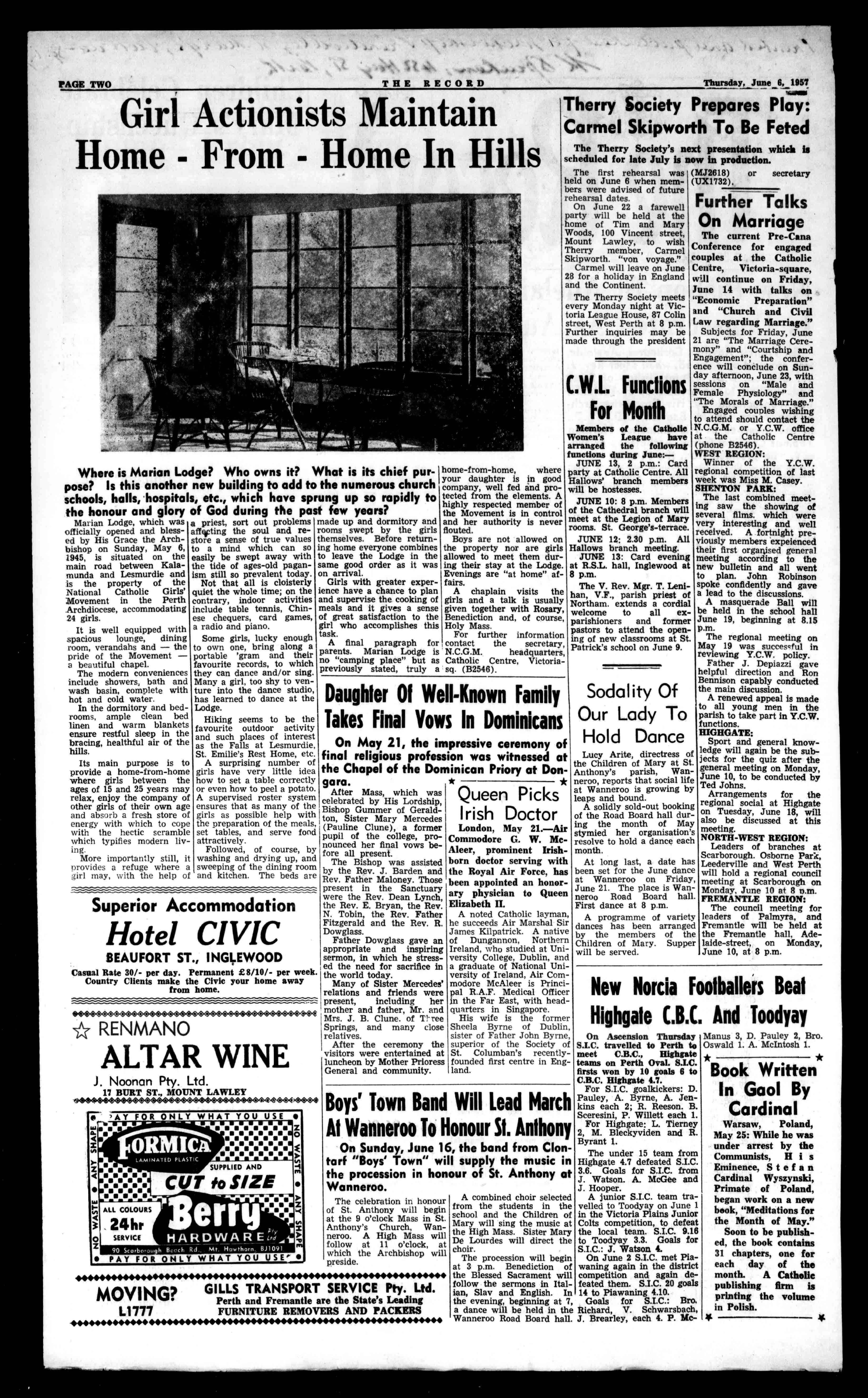 133SOLOMONSTREET,BEACONSFIELD FRIDAY,14thJUNE,1957,at3p.m. SupperRoom,FremantleTownHall