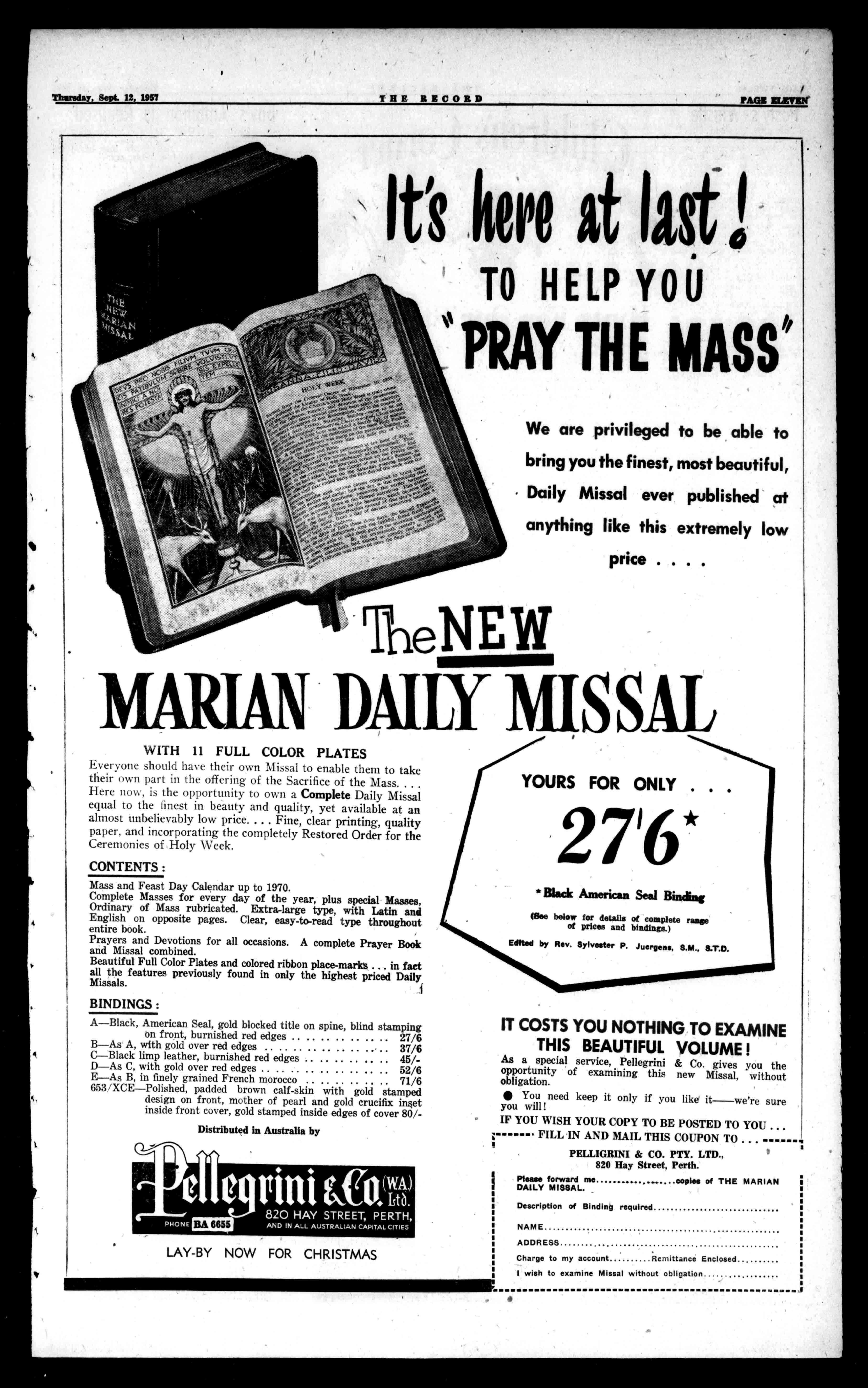 Convent,WM3672. FriendsofCarmelwho liveinthecountrymay forwardparcelstothe Claremontrailwaystation, wheresamewillbepicked up. Theco-operationandpresenceofthepeopleofthe Archdioceseinhelpingto makethefeteanoutstandingsuccesswillbeappreciated,andwillbeassisting theSisterstoliquidatethe debtontheirbuildings.