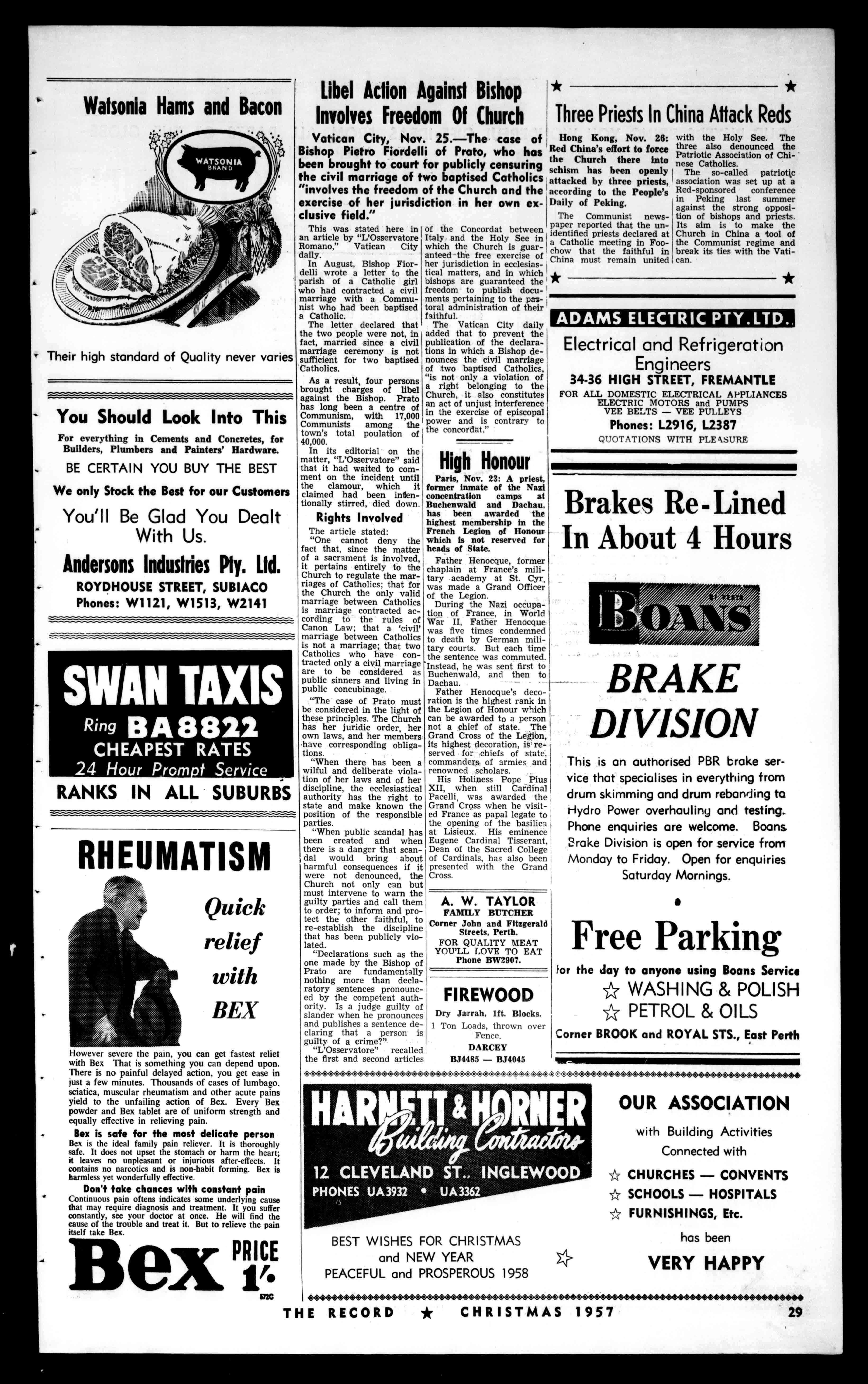 DECEMBER8:NewChapel,Castledare.Presbytery, Rookwood-street.Mt.Lawley.NewChurch, Rookwood-street,Mt.Lawley. Presbytery,EastVictoriaPark. MissionHouse,Lesmurdie.