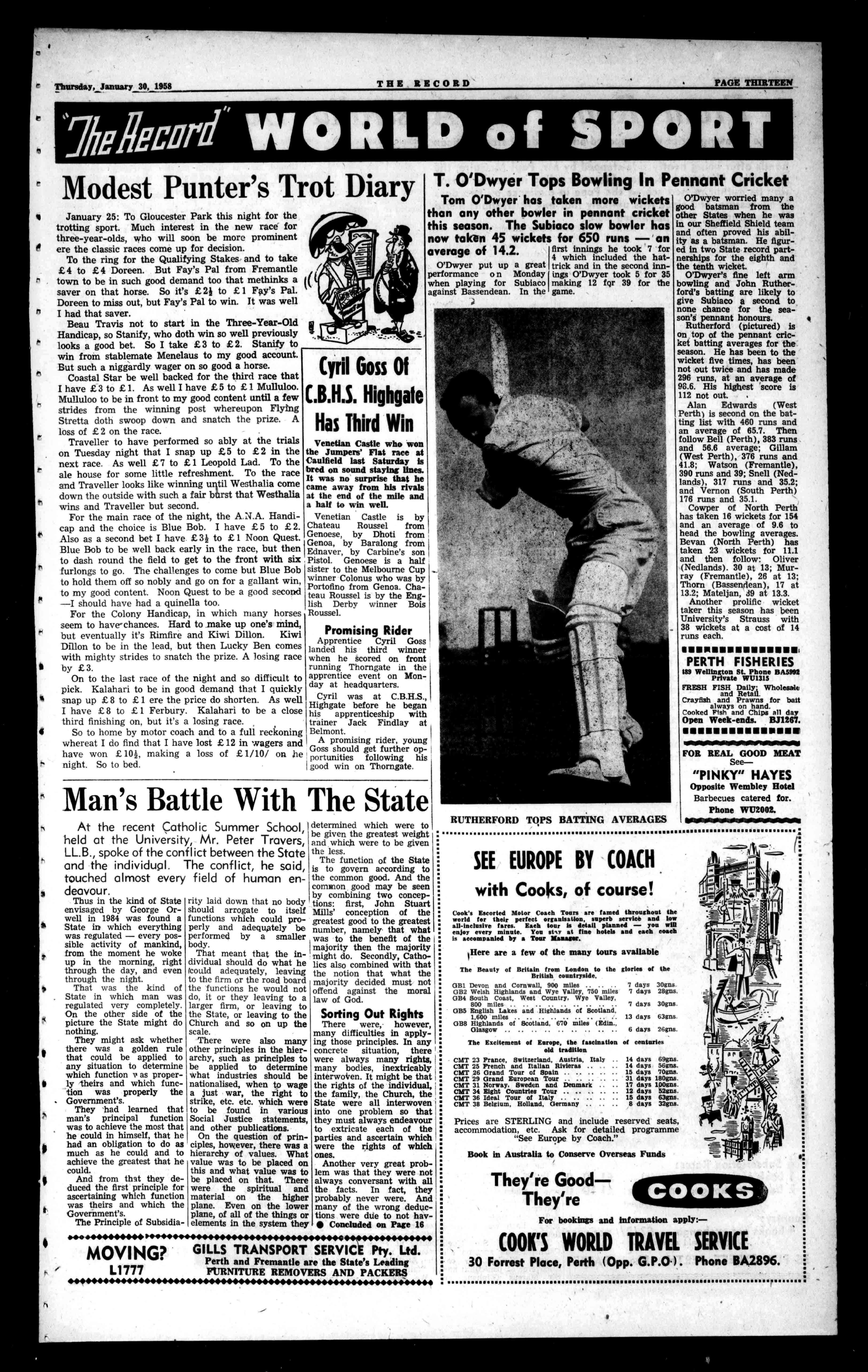 414.1-epe/fre.-6te,/ Zcaie<Jdee,.ce-&.d-.fe cf?', 1 FlyAnsett-A.N.A. Australia'sLargest Fleetof Pressurised Aircraft Ring,WriteorCall414MURRAYSTREET BA9651. 55ST.GEORGE'STCE. BF3982. OranyAuthorisedAgent. Pricy6d. No.2843(RegisteredattheG.P.O.,Perth,for transmissionbypostasaNewspaper)Perth,Thursday,January30,1958