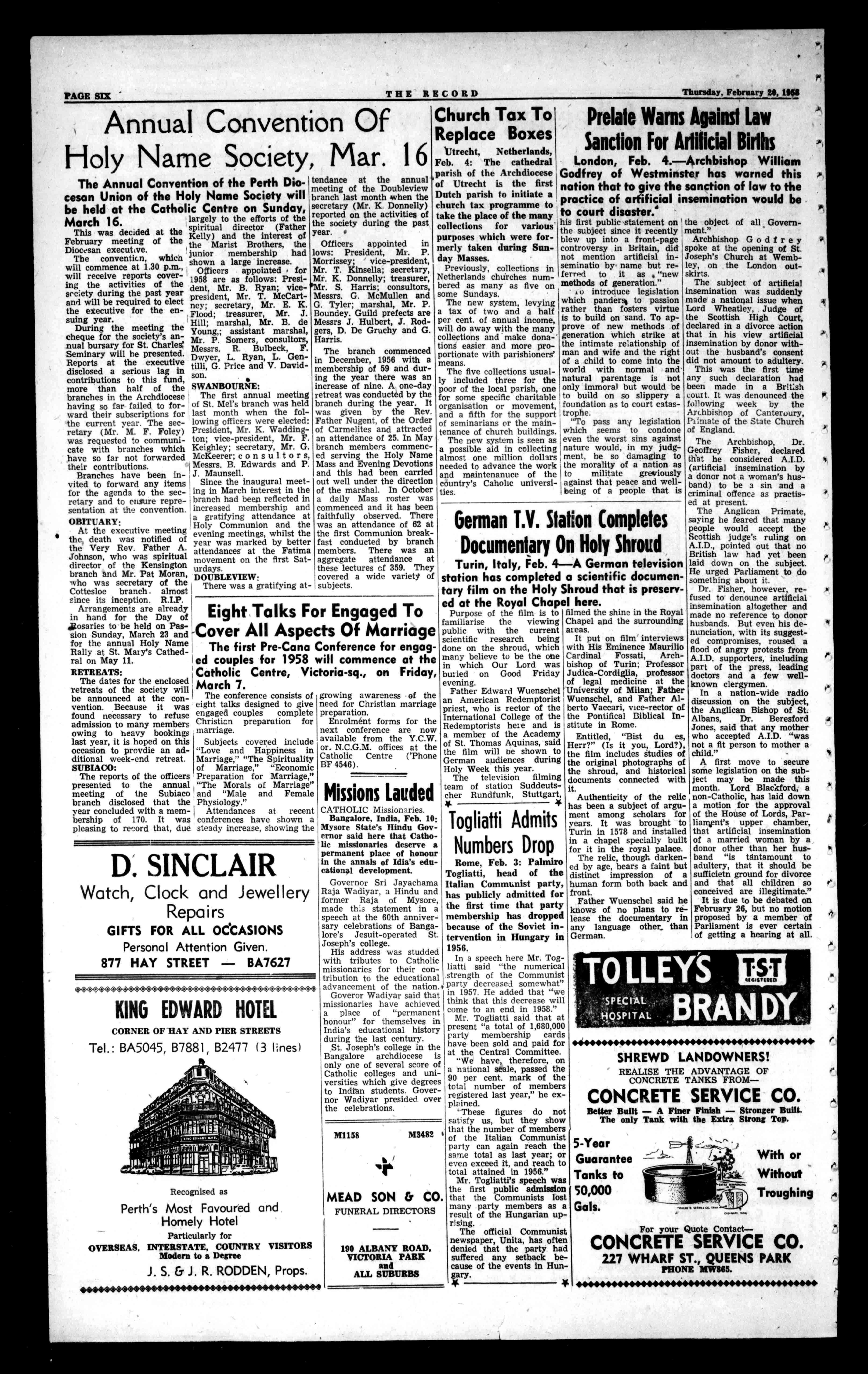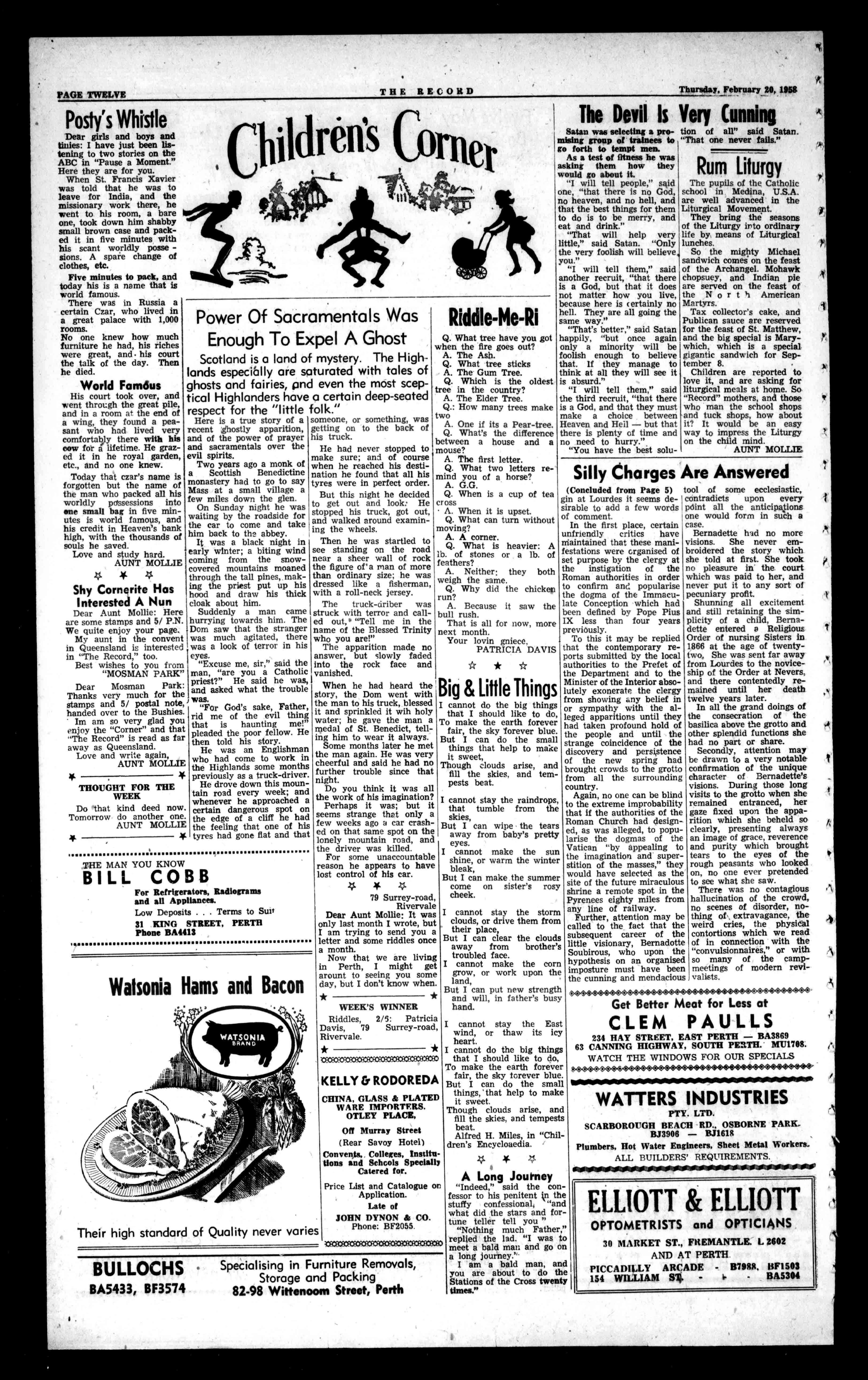 ST.GEORGE'STCE. BF3982. OranyAuthorisedAgent. Pric6d. No.2846(RegisteredattheG.P.O.Perth,fortransmissionbypostasaNewspaper)PerthThursday,February20,1958