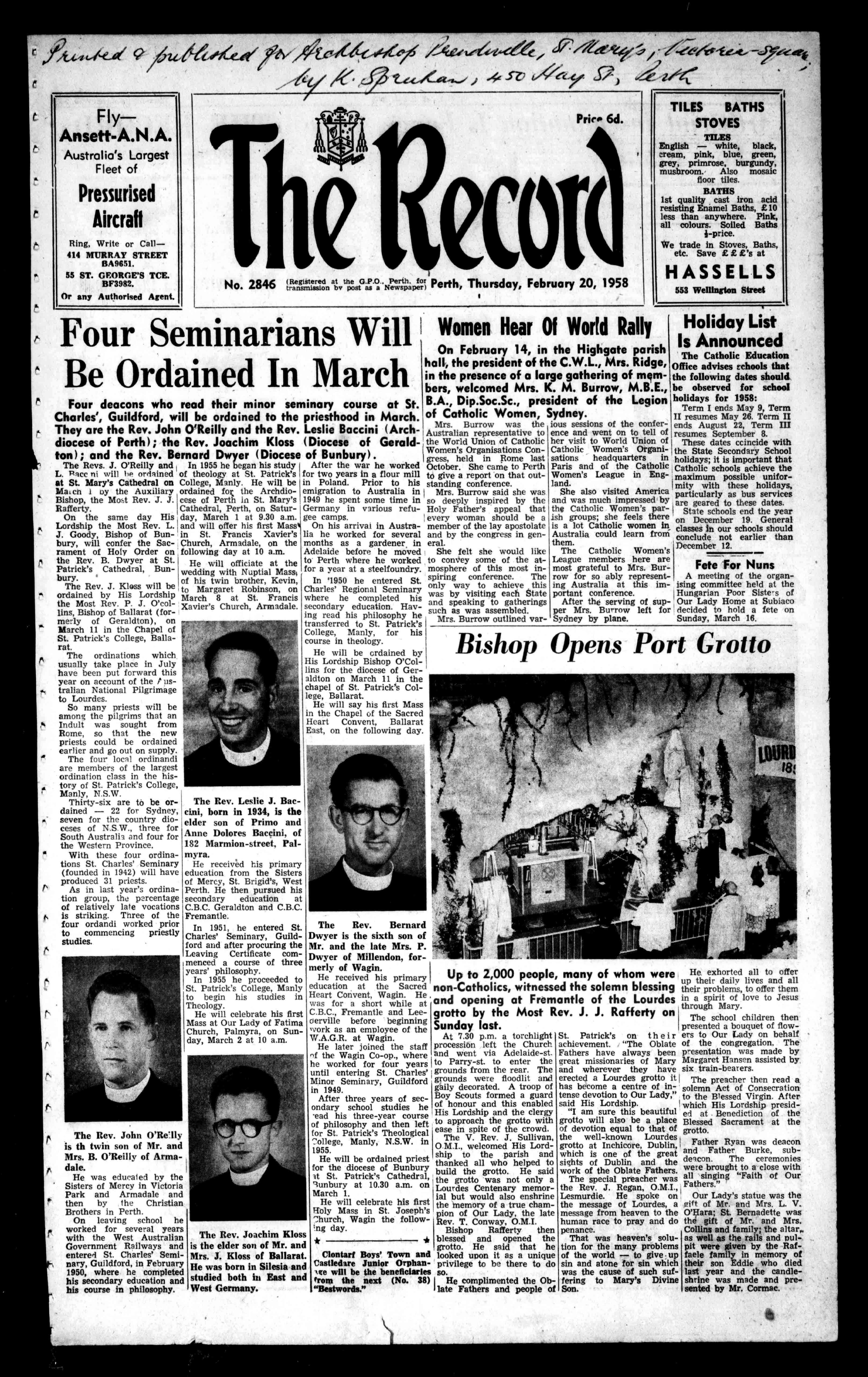 TheRevs.J.O'ReillyandIn1955hebeganhisstudyAfterthewarheworkedOctober.ShecametoPerth L.PaceniwillheordainedoftheologyatSt.Patrick'sfortwoyearsinaflourmilltogiveareportonthatout-