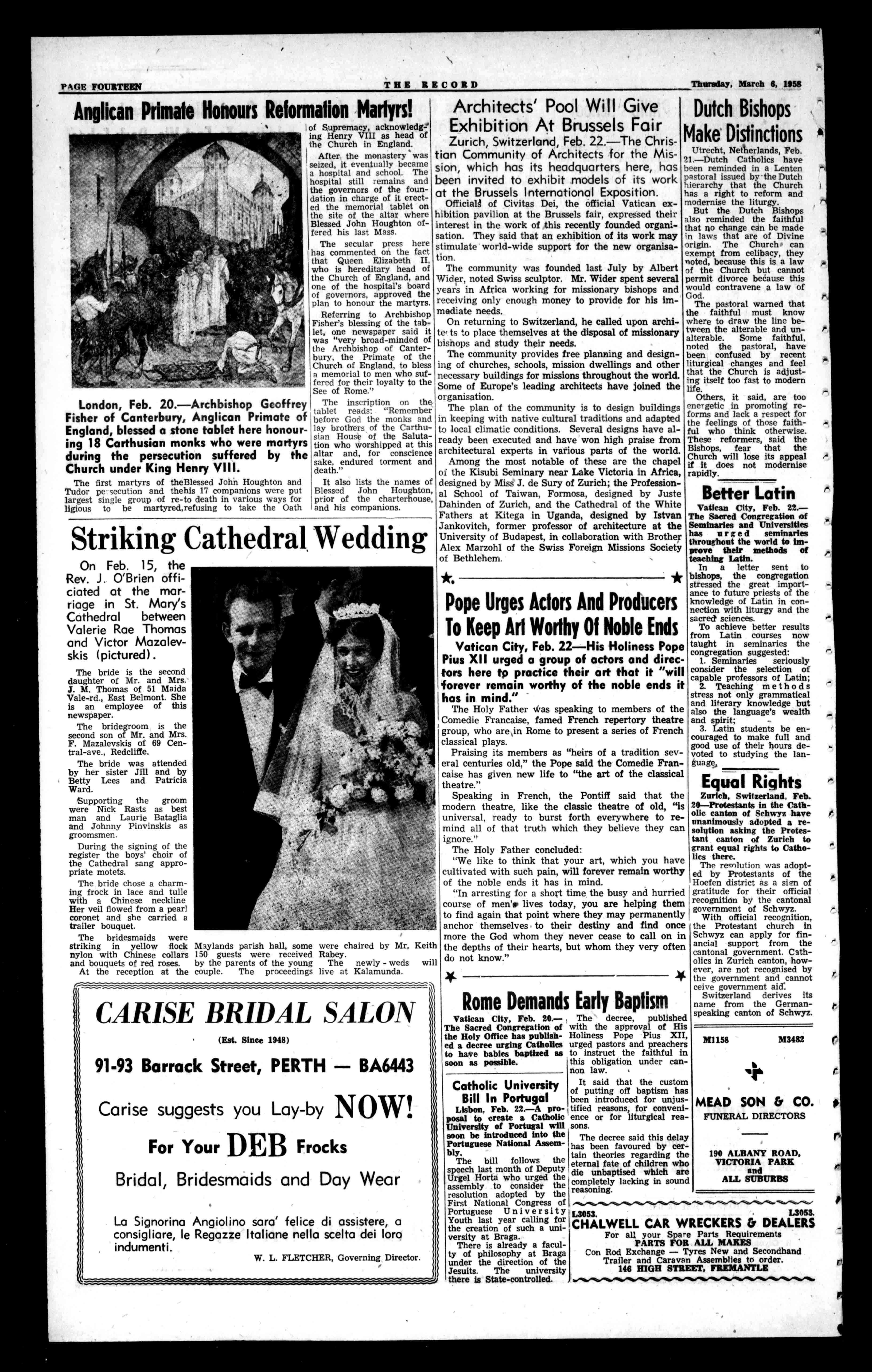 FIyAnsett-A.N.A. Australia'sLargest Fleetof Pressurised Aircraft Ring,WriteorCall414MURRAYSTREET BA9651. S5ST.GEORGE'STCE. 13E3962. oranyAuthorisedAgent. eiec,4, Prir"6d. No.2848(RegisteredattheG.P.O.,Perth,for transmissionbypostasaNewspaper) Perth,Thursday,March6,1958