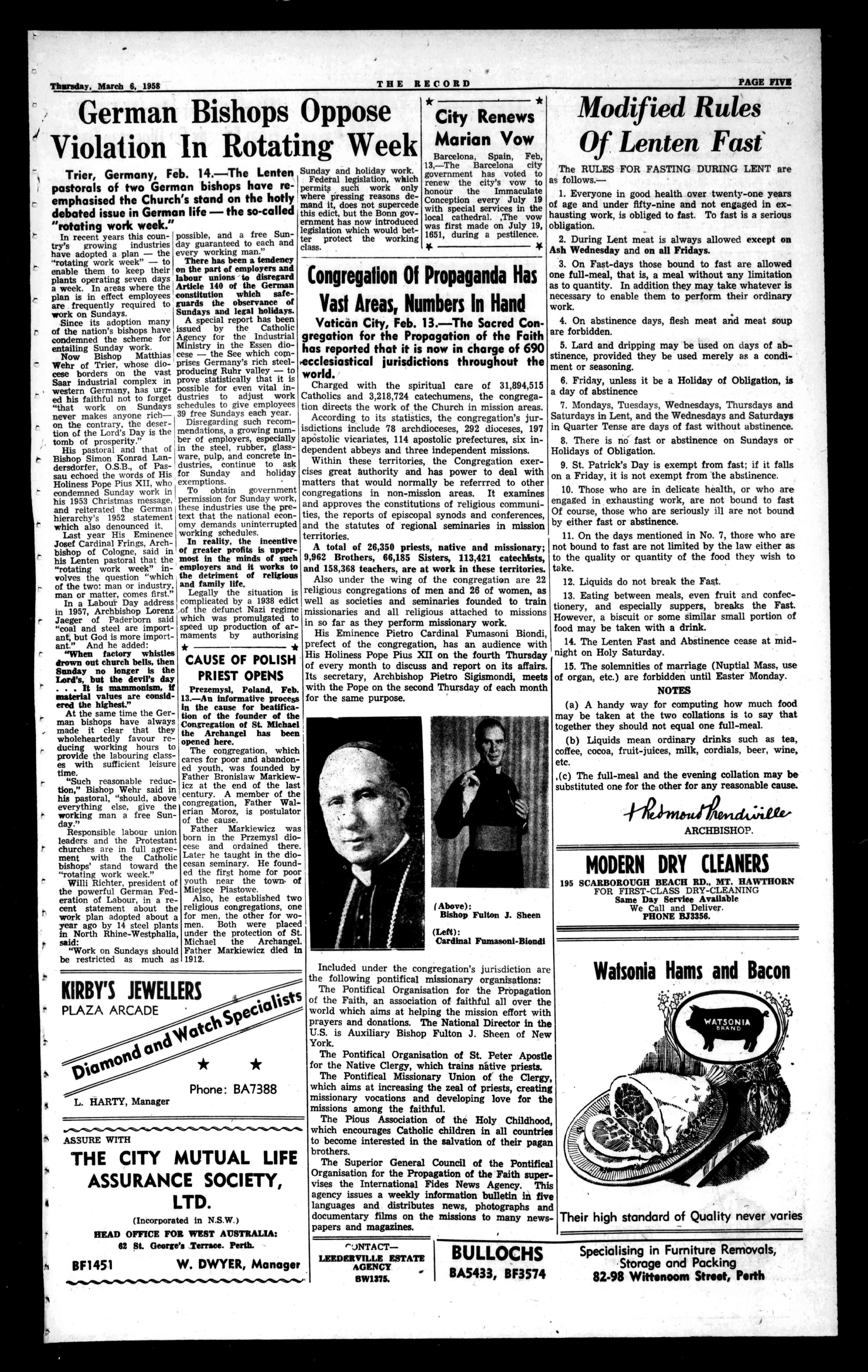 WecongratulatethemongivenconcurrentlyatSt. theirentryintotheranksPatrick's,Havelock-st.,and ofChrist'spriestsandweatSt.FrancisXavier's, congratulatetoo,inaveryEastPerth. specialway,theparentsandThemissionattheCathenearonesofFatherO'Reillydralwilloccupyafortnight, andFatherBaccini. fromMarch16-30.