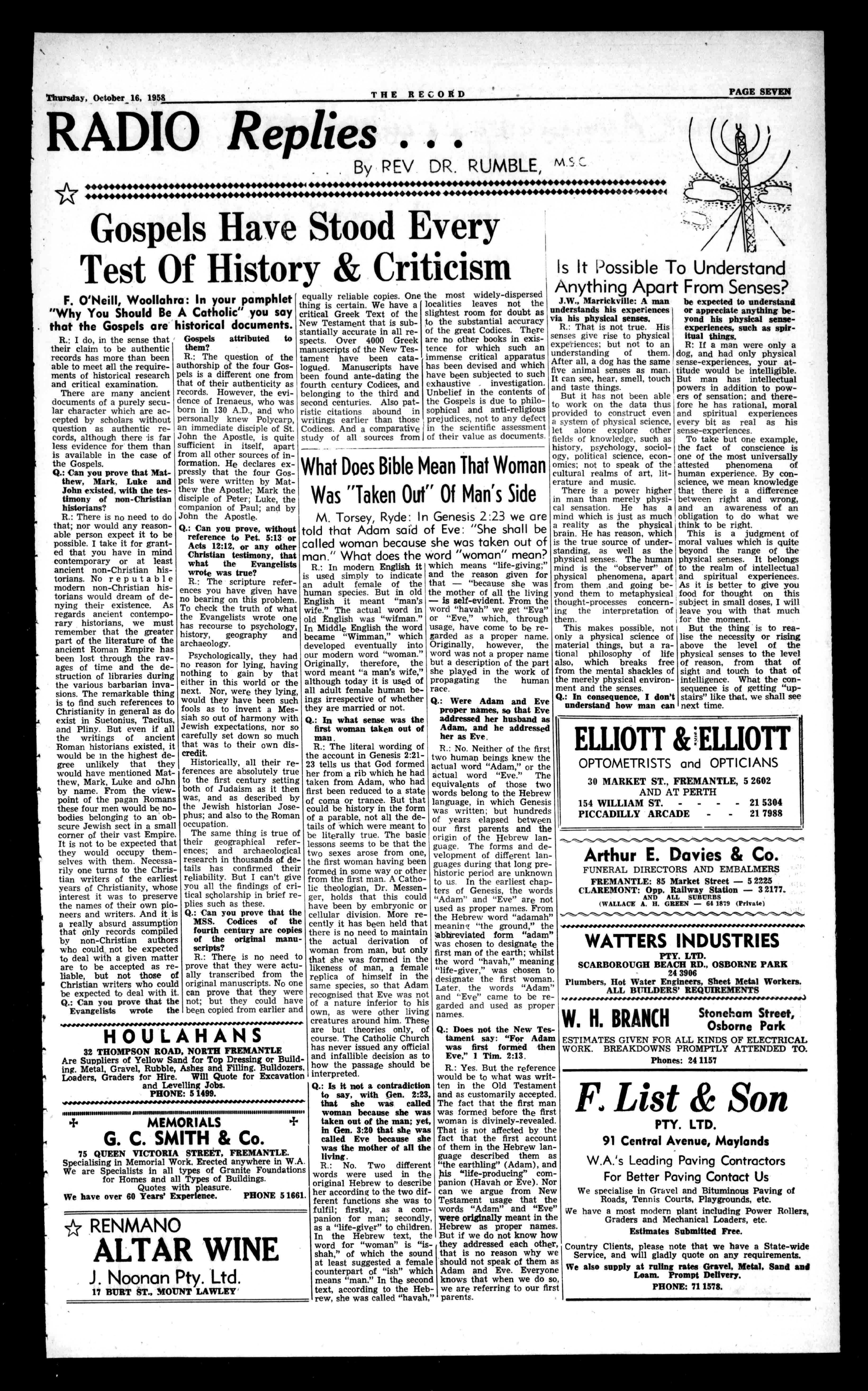 FLORAL TRIBUTES ITTAKESFLOWERSTOEXPRESSyourfeelingstoyour bereavedones.Forpersonalattentionandpromptdeliveryphone BF3048(3lines1: afterhours MW748or1.2410.Telegrams "WILSONJOHNS,"Perth,WILSON OJOHNSPTY.LTD.,74Ramat Street,Perth.