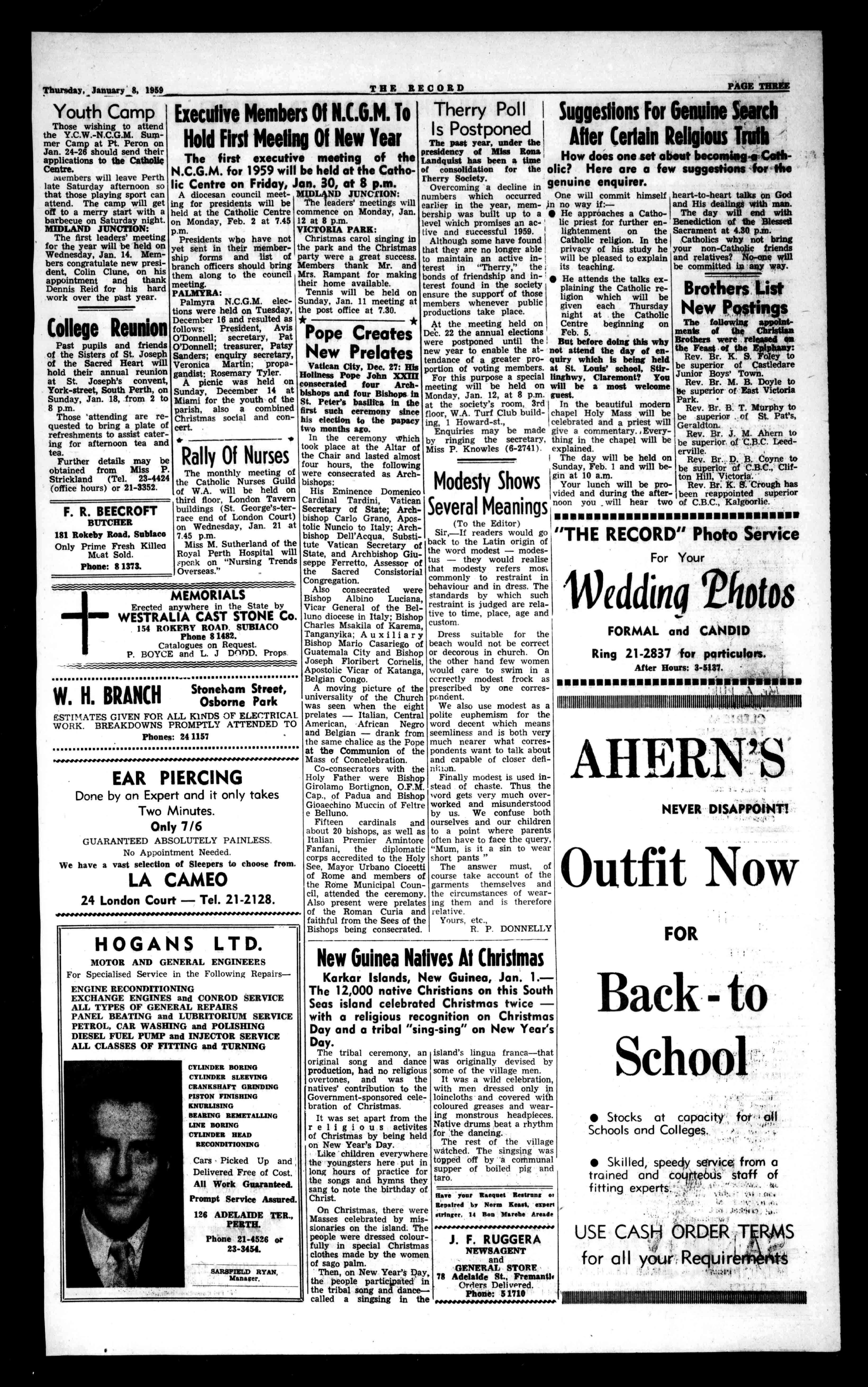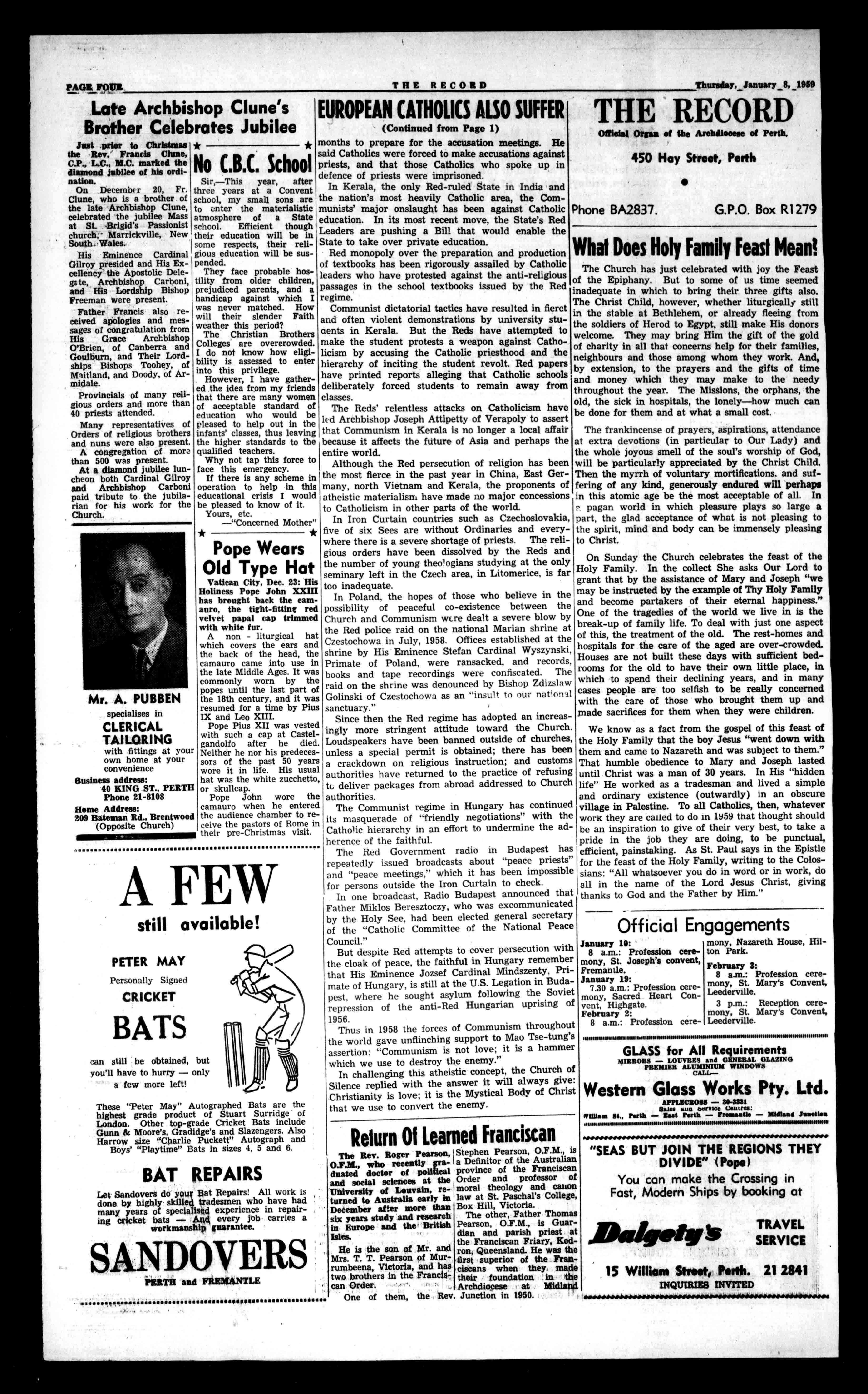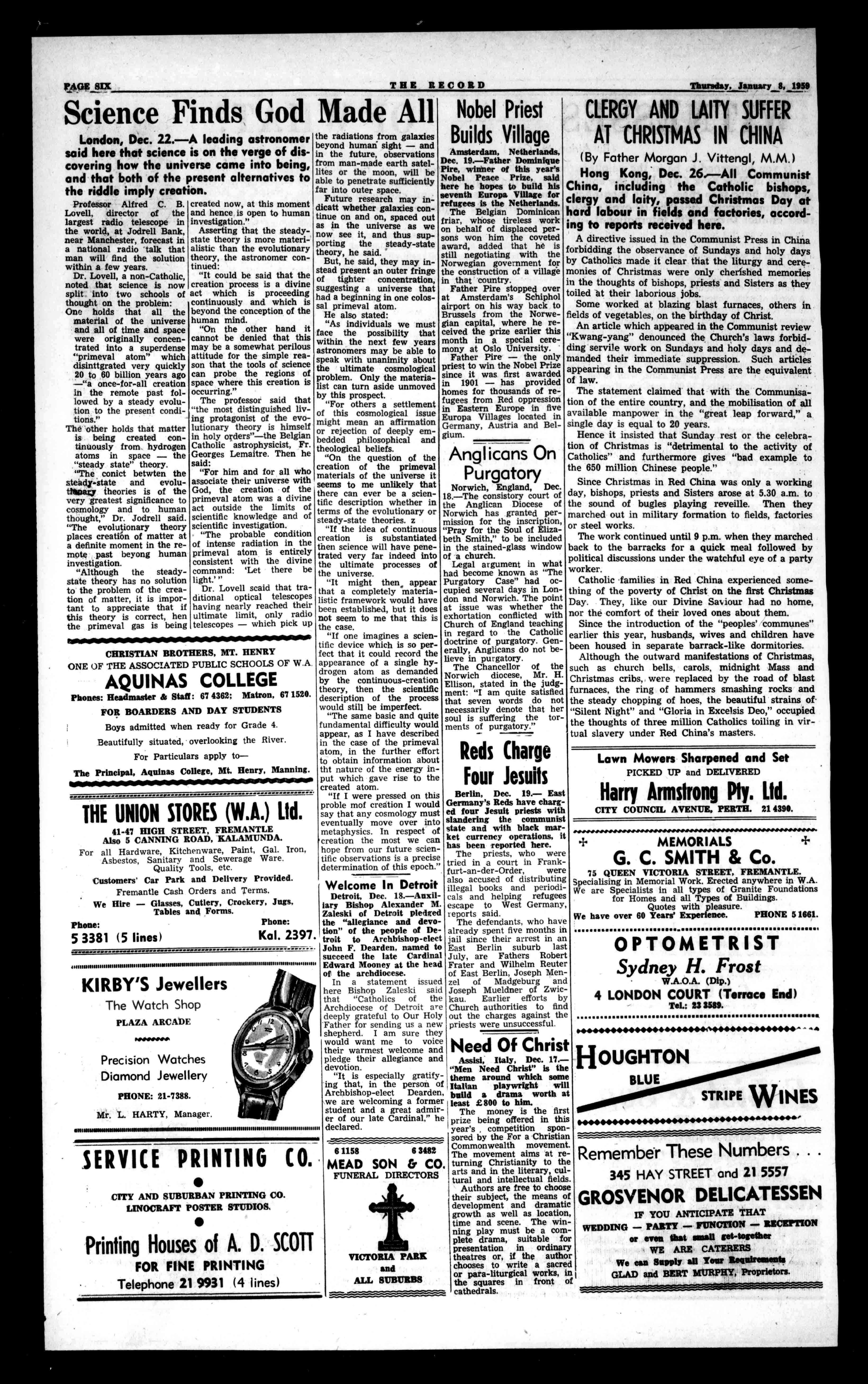 OTHERPAGES PopeGratefultoPerth LocalNews 3 WitnessesofWhat 5 ScienceDiscovers Creation RadioReplies 7 FarEastBishopson thereligiouslife,followingMarxism 8 theleadoftheotherthrccChildren'sCorner 10 livingmember ofthePope'sXmasMessage 11 family.
