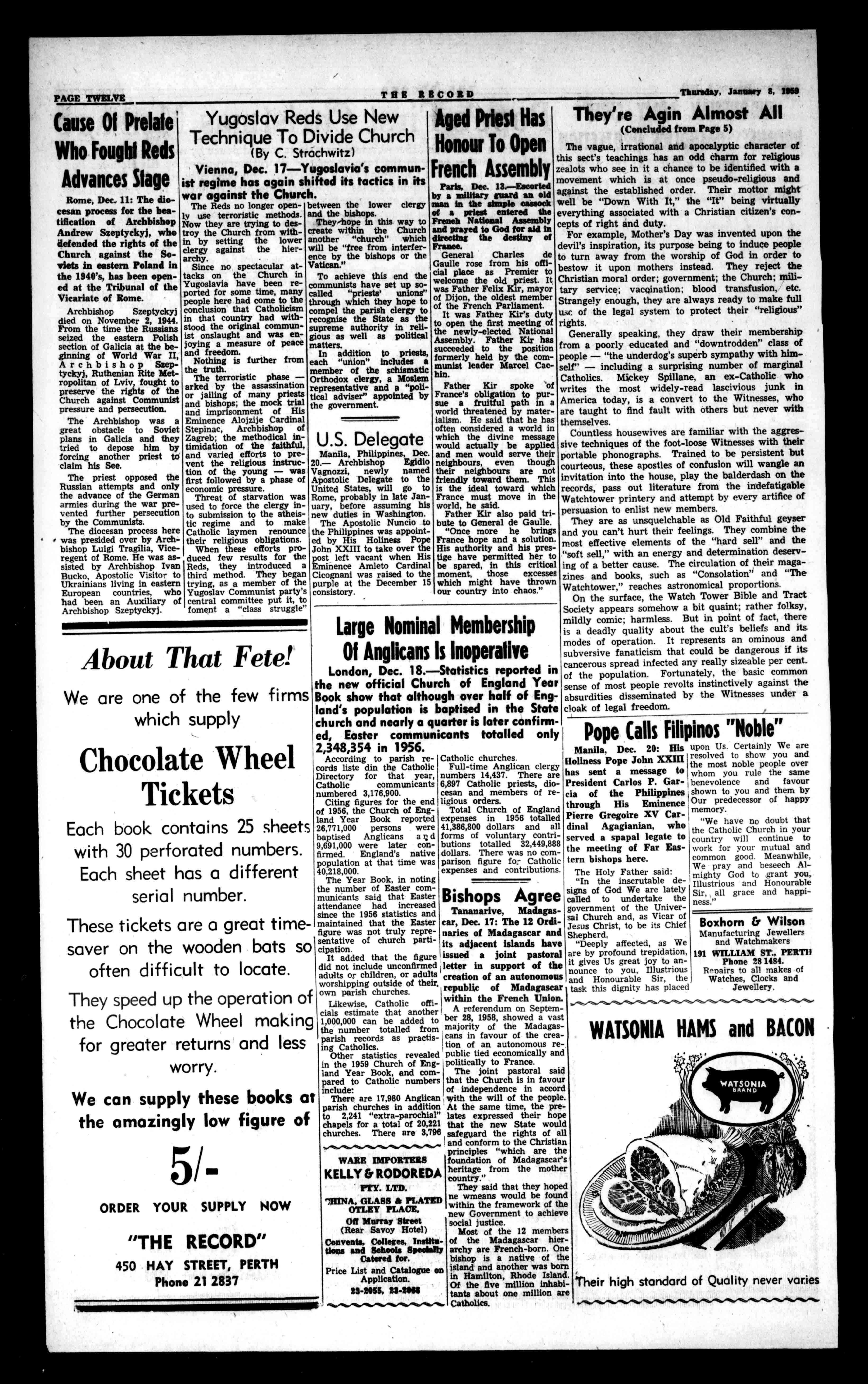 * OTHERPAGES iv PopeGratefultoPrith 2 LocalNews 3 WitnessesofWhat 5 ScienceDiscovers Creation 6 RadioReplies - 7 FarEastBishopson Marxism Children'sCorner 10 Pope'sXmasMessage 11