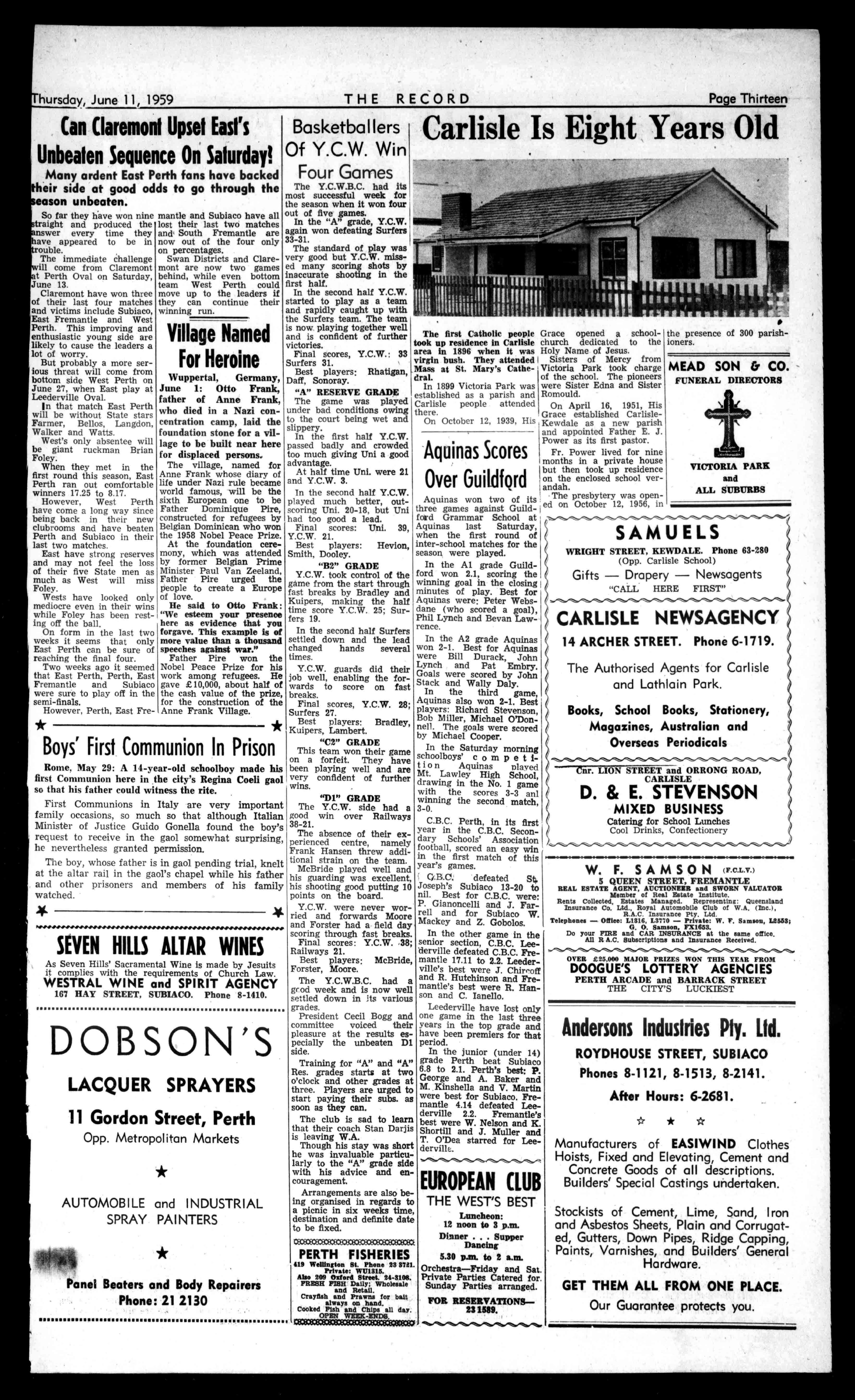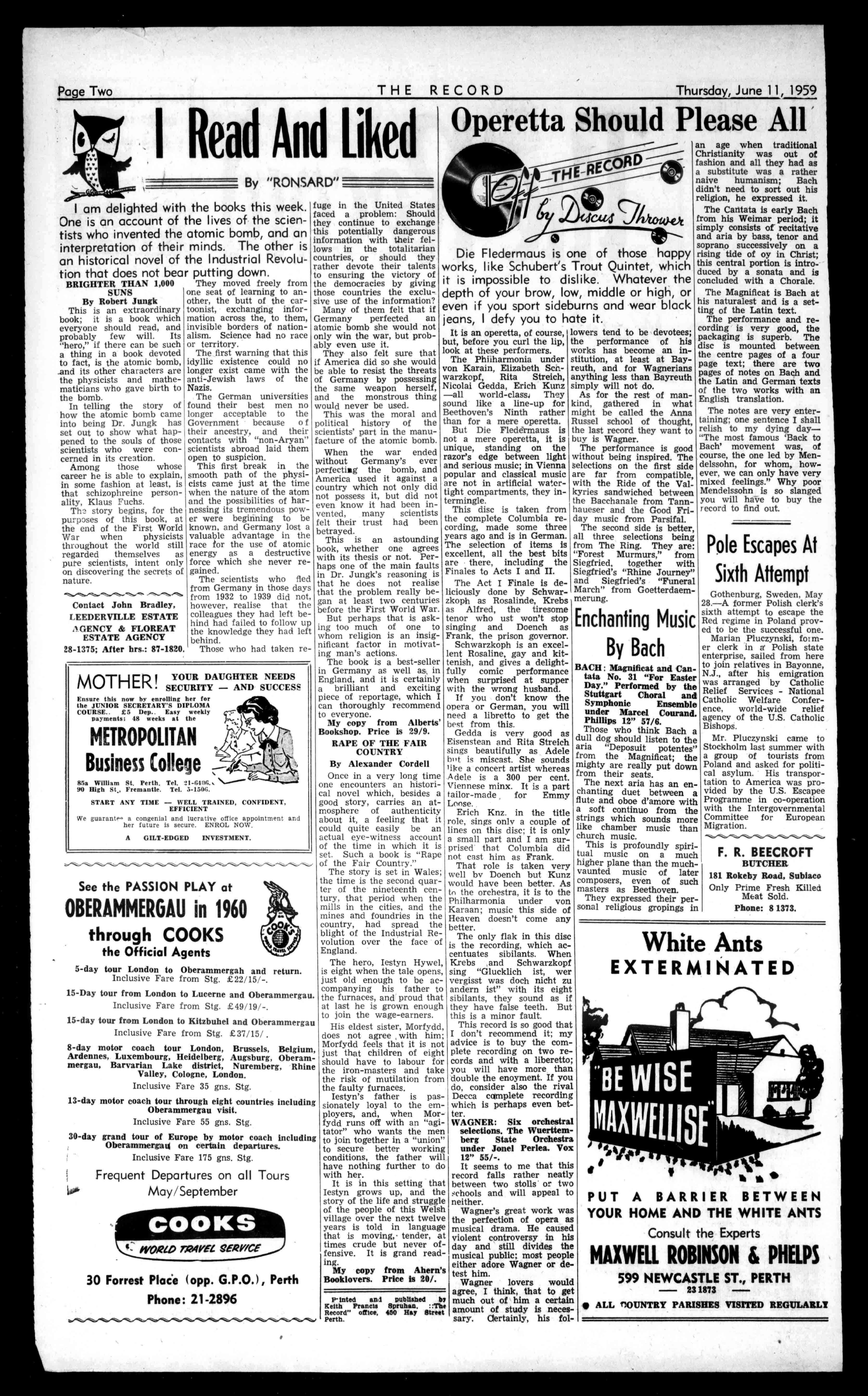 5-912.(79 ./24.04t FLYTHE BIGONE FLY ANSETTANA Phone21-9651for Bookings STOPPRESS!Coming! Another triumphantfirst-prop-jetElectras willbeflownfirstby ANSETT-A.N.A. reNrr 111C.1?eCOT 741I1'1 Price6d. No.2877(Registeredatthe0P.O.,Perth,for PerthThursday transmissionbypostasaNewspaper) y,June11,1959