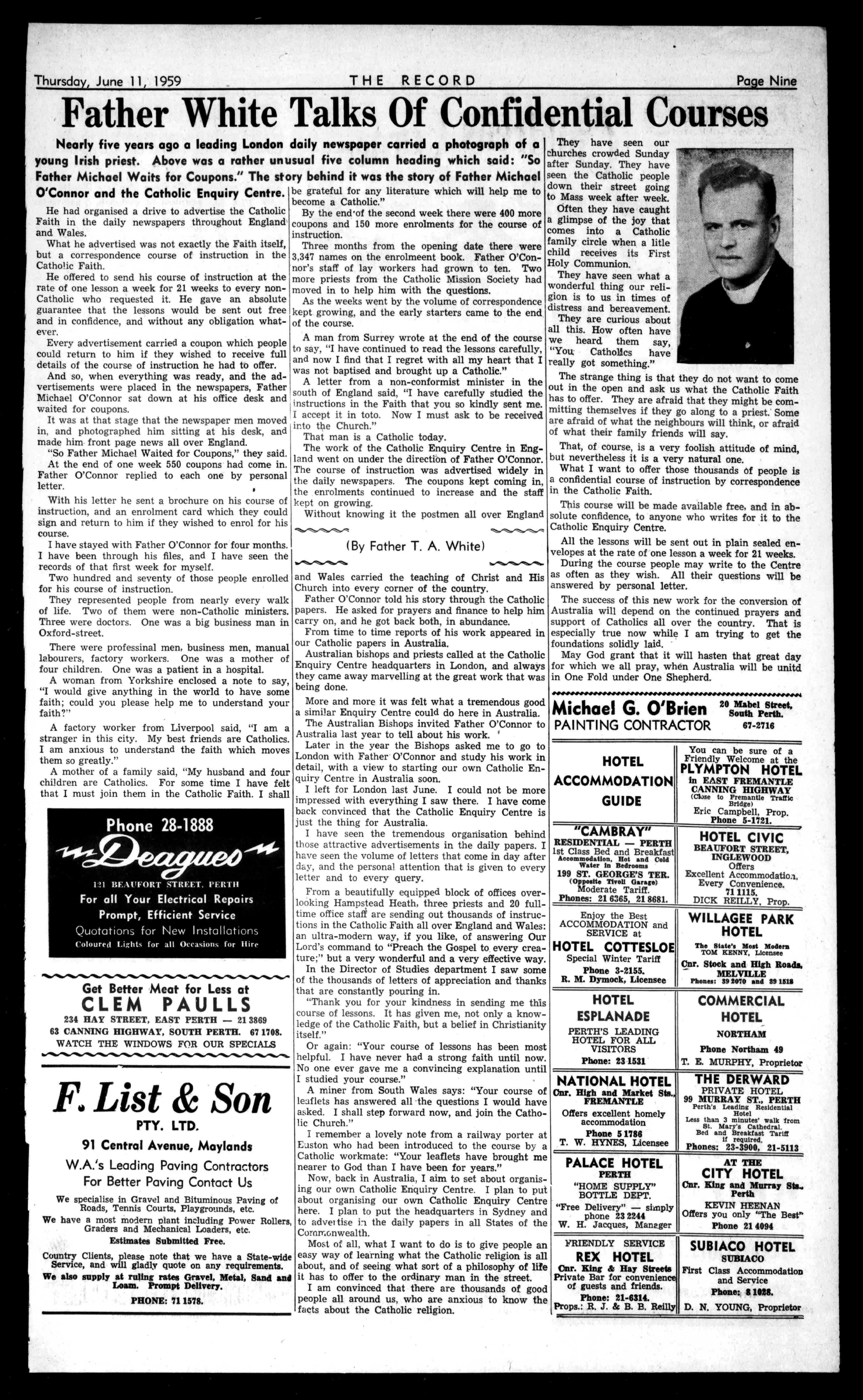 FraternitiesoftheThird Orderareestablishedat Perth,VictoriaParkand MidlandJunction.Enquiriesmaybeaddressedto Rev.FatherBerard,O.F.M., 53GreatNorthern-hwy., MidlandJunction.