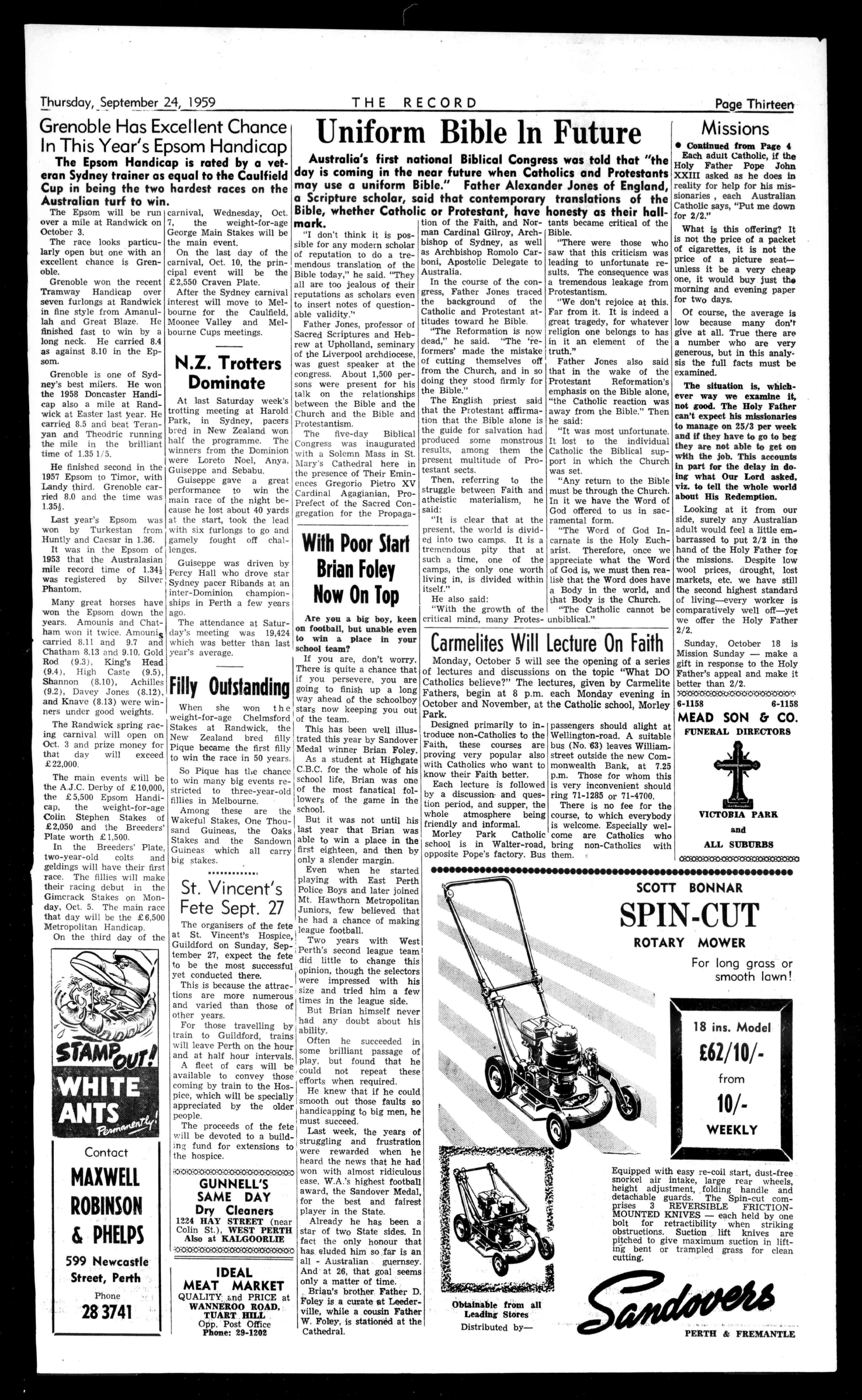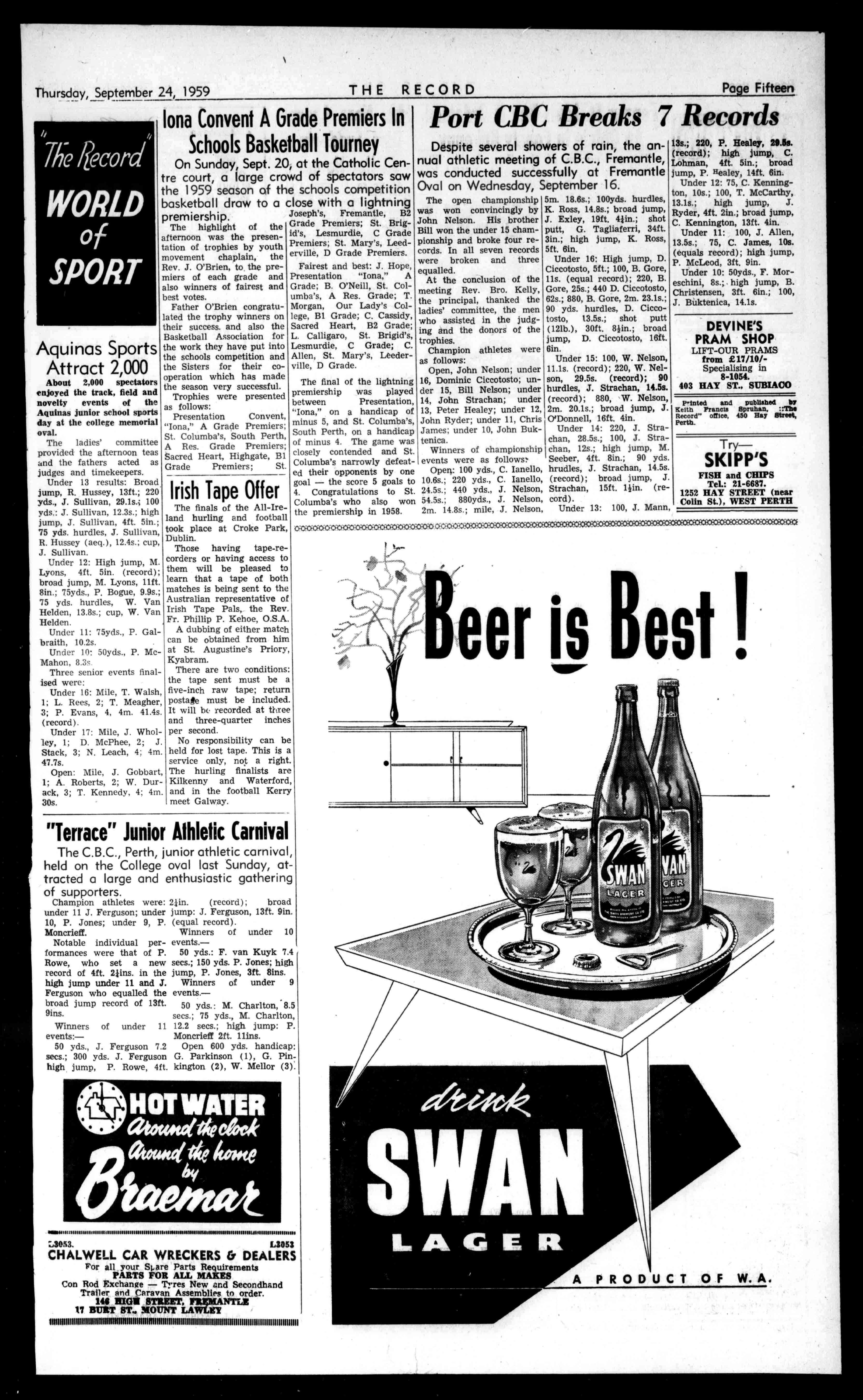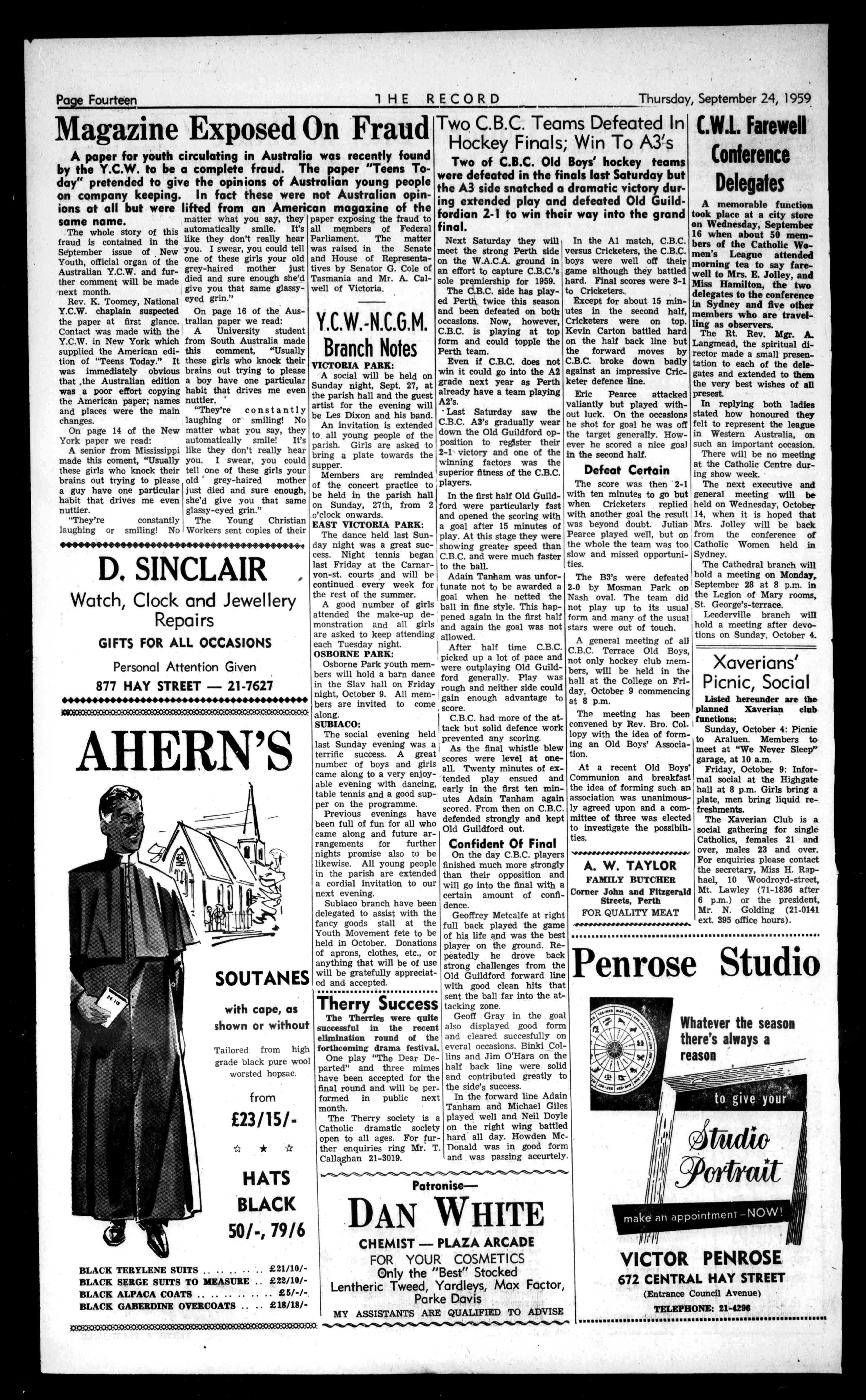 /te./-44, .)1-24~Zu/et1.4 ./z-e;,414e.f cesz)44rg HASSELLS SaveYou£££'s on BATHS-BestMakes BASINS STAINLESSSTEELSINKS CUPBOARDS TILES-FloorandMosaic STOVES-BestMakes (Gas,ElectricorWood) HOTWATERSYSTEMS BigSavingsonBuilding andPlumbingSupplies at HASSELLS 553-561WELLINGTONST. Phones21-6307,21-3047. Price6d. te?ccot No.2892cRegisteredattheO.P.O..Perth.t,,t transmissionbypostasaNewspaper. Perth,Thursday,Sept.24,1959 NOW!BuytheBargains oftheYearatPilkingion's TheTownHallisopposite ANNIVERSARYand STOREEXPANSION SALE! 602HAYSTREET TheTownHallisopposite